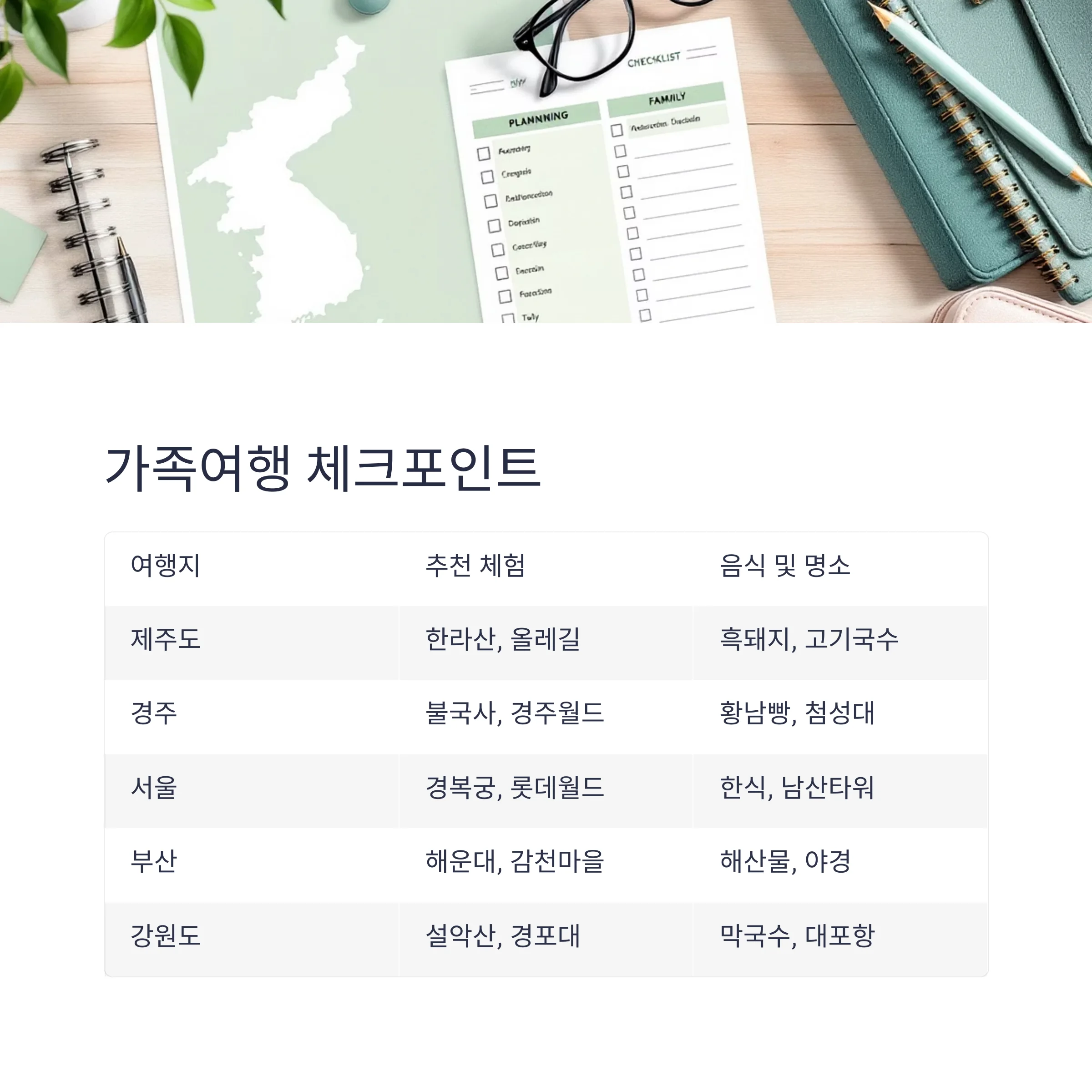 가족 여행 준비, 체크포인트 한눈에 보기