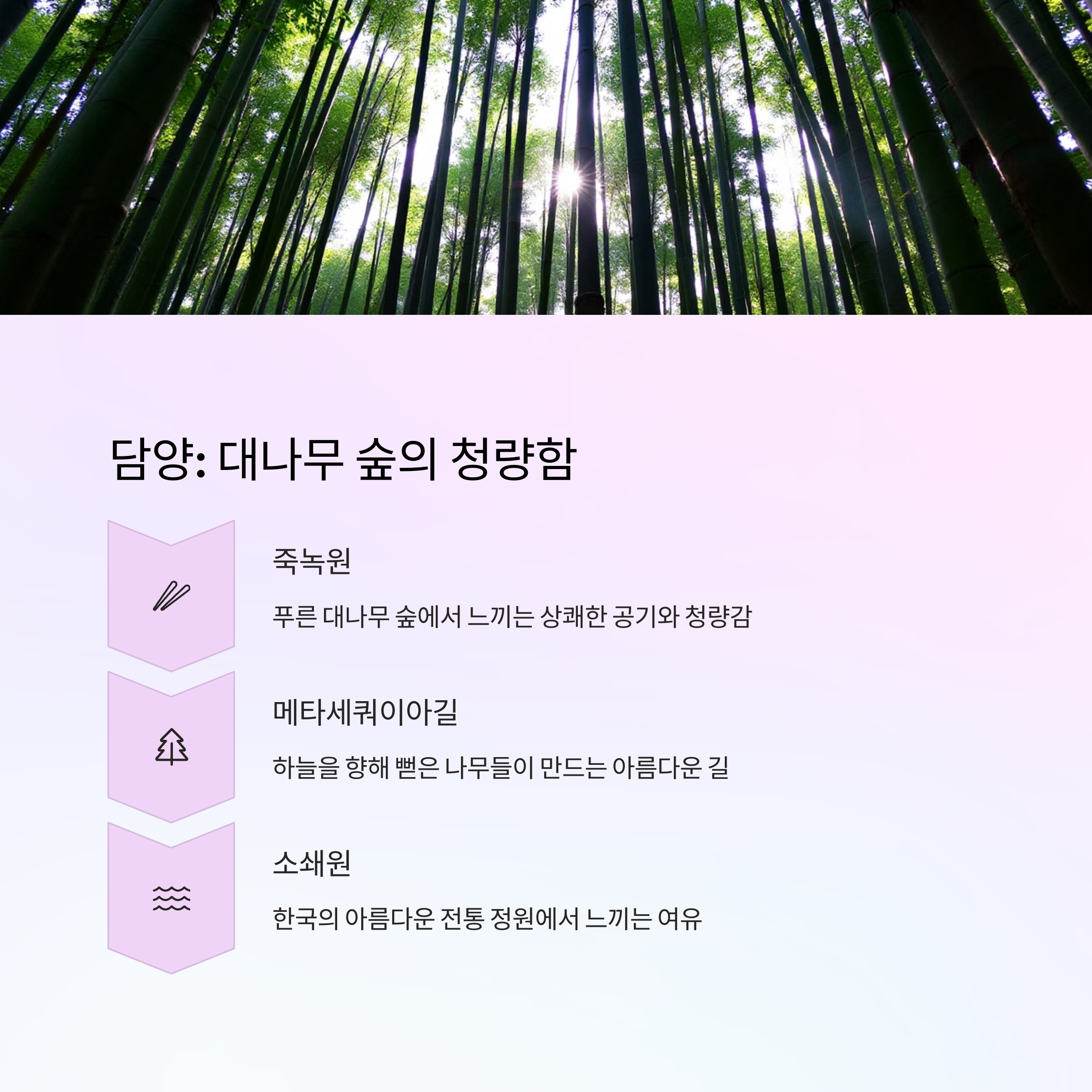 "담양에서는 자연의 소리에 귀를 기울여보세요" 🎋