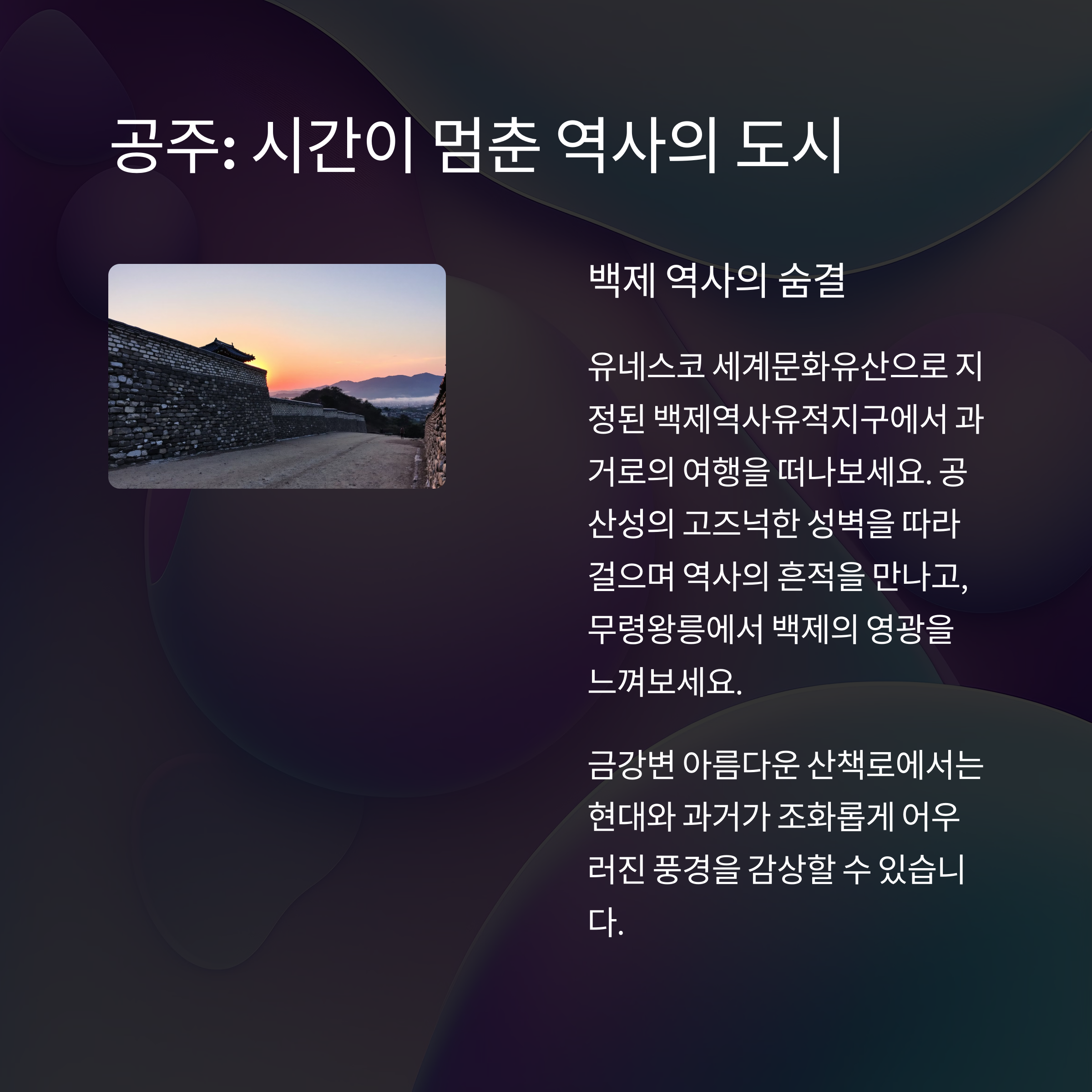 "공주에서는 천천히 걸을수록 더 많은 이야기를 만날 수 있습니다" 🏛️