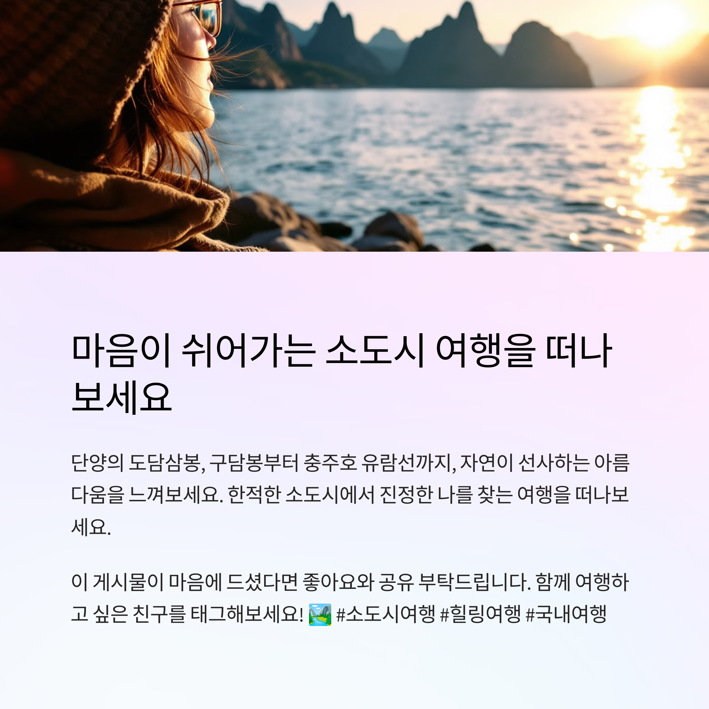 "단양에서 자연을 품은 힐링을 시작하세요" ⛰️