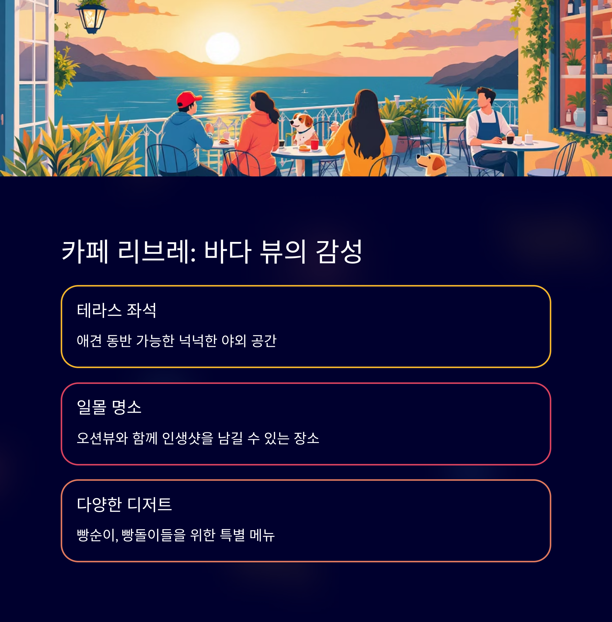 | 4 | 카페 리브레 | 바다뷰, 인생샷 필수 카페 |