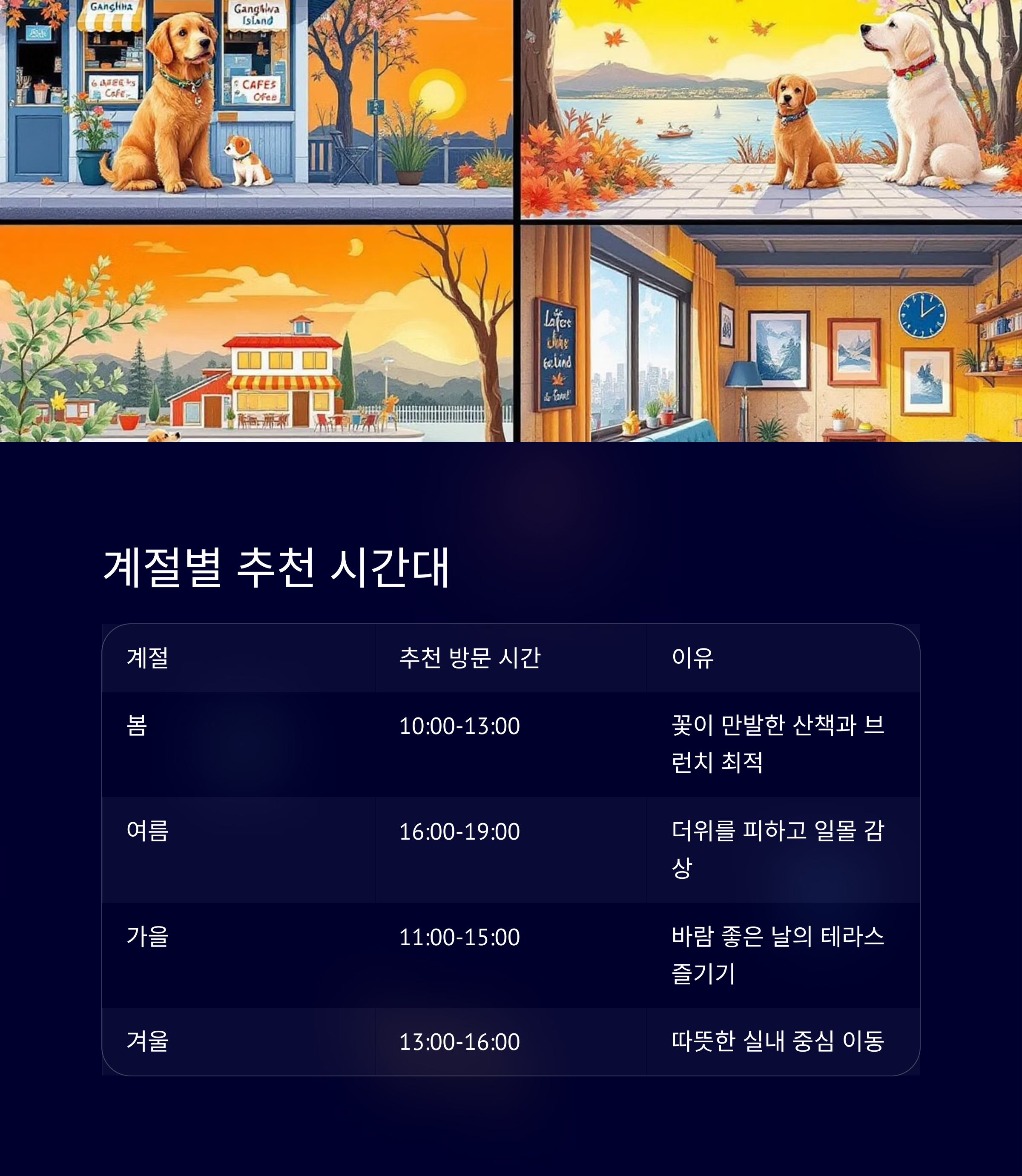 계절 추천 방문 시간 이유