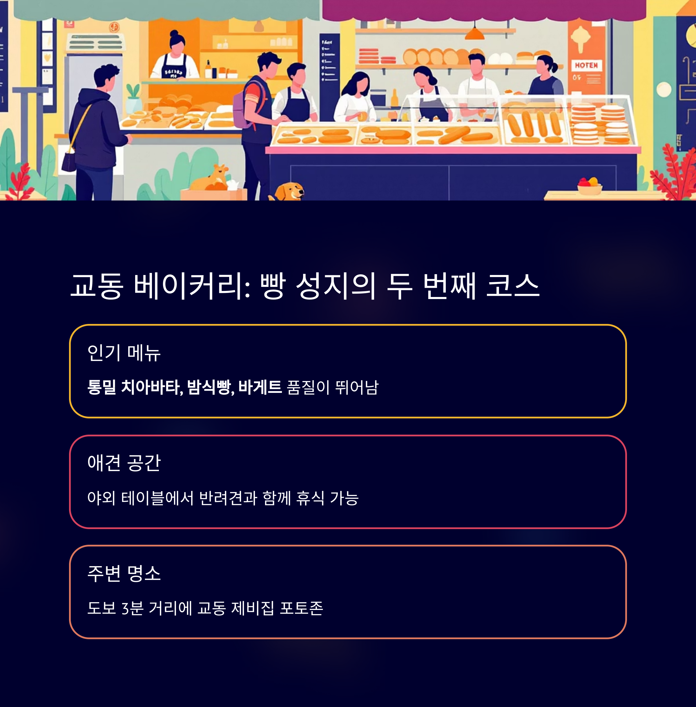 | 2 | 교동 베이커리 | 유명 베이커리, 산책 코스 연결 |