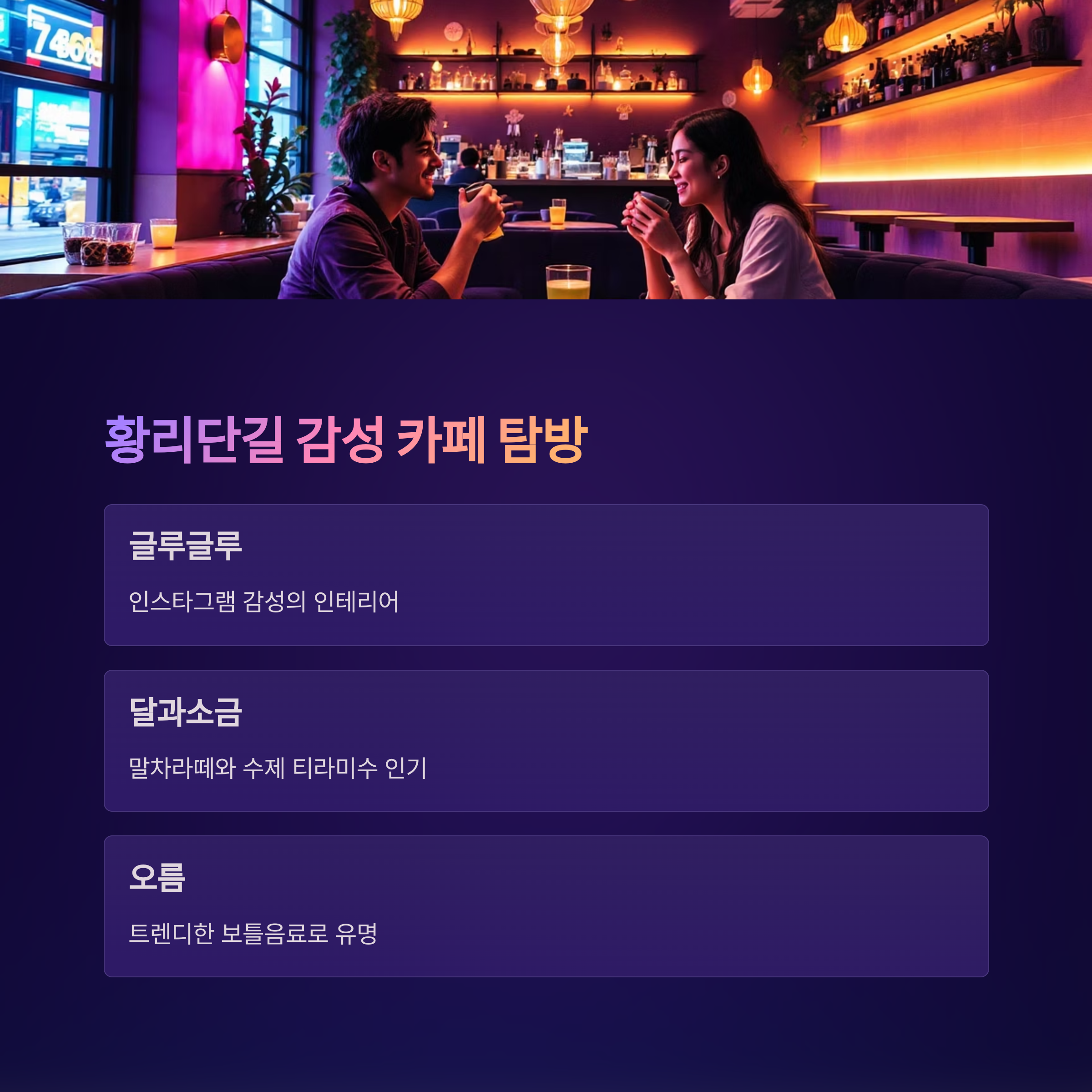 "트렌디한 감성 카페에서 여유를 즐기는 데이트"도 필수입니다.
