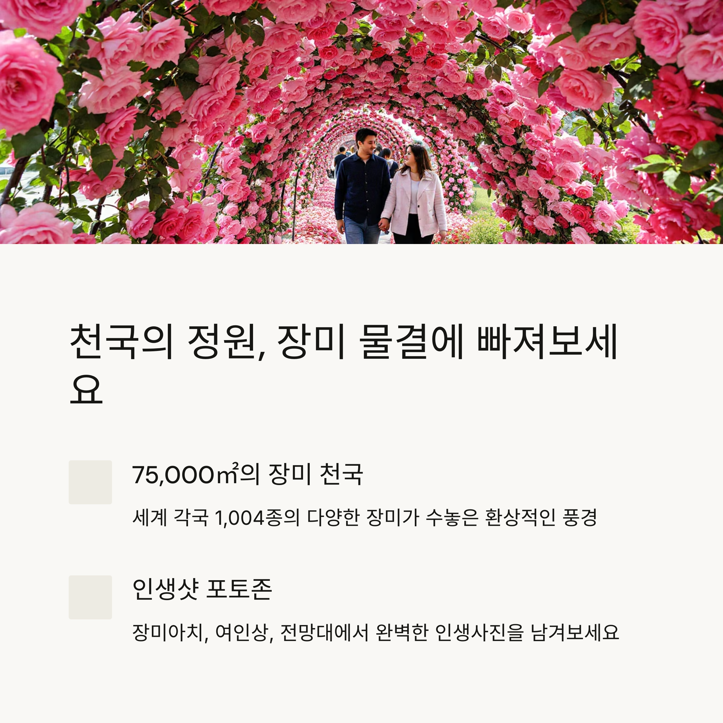 3. 셋째, 저녁에는 라이트업된 장미터널을 걸으며 하루를 마무리하세요.