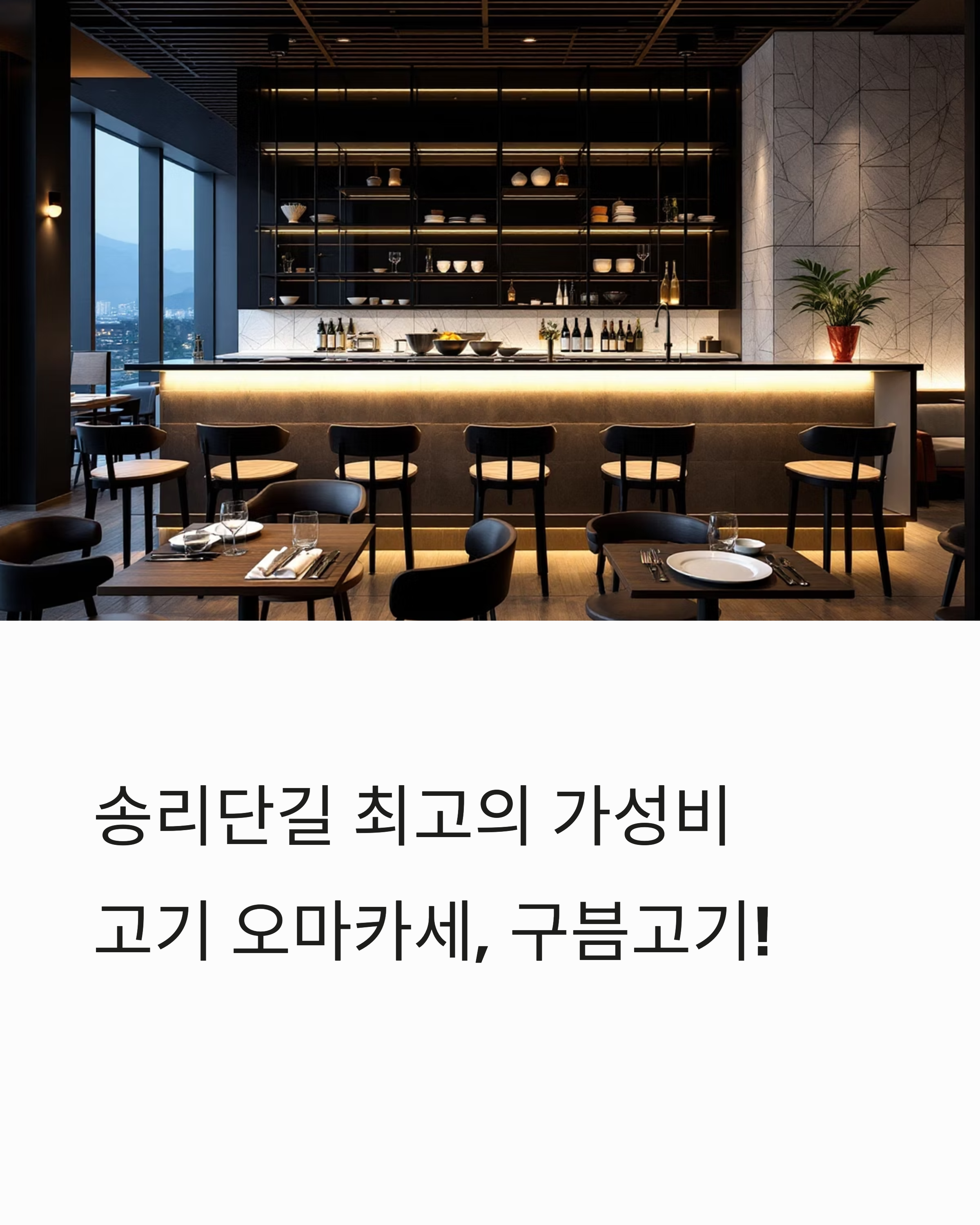 예약은 필수이며, 송리단길의 트렌디한 분위기까지 함께 즐길 수 있는 점이 매력적입니다.
