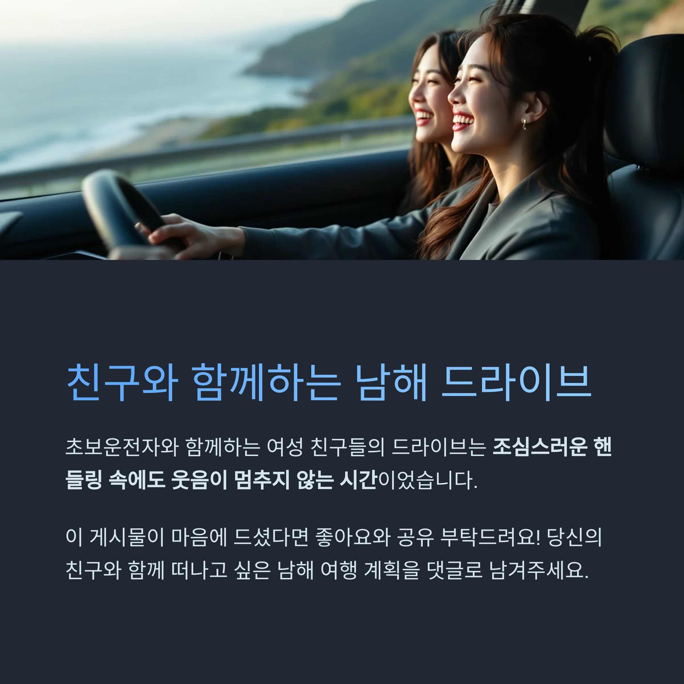 직접 운전해 떠나는 남해 드라이브, 감성과 우정의 도로