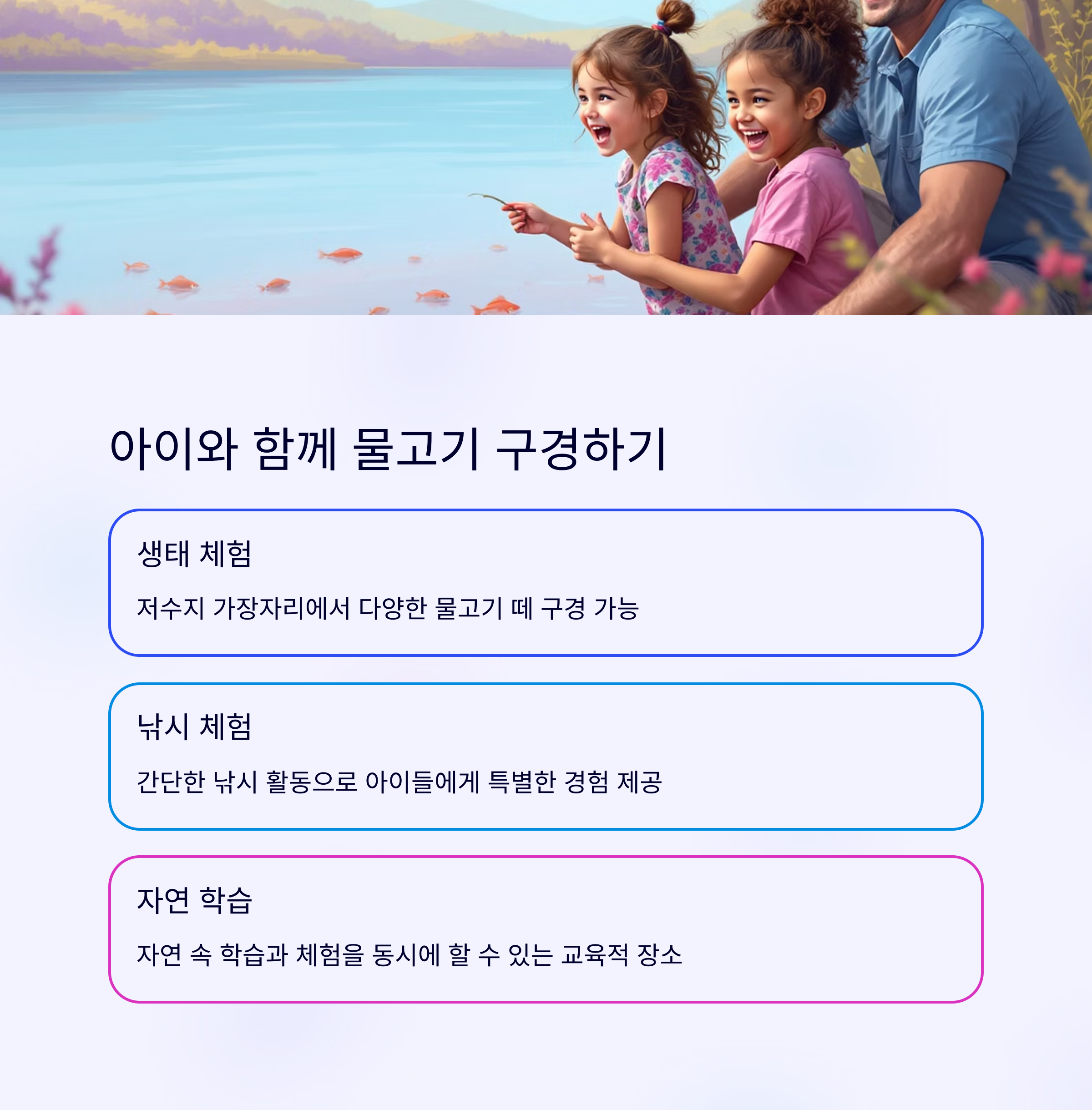 간단한 낚시 체험도 가능해 아이들과 함께 오기 좋습니다.