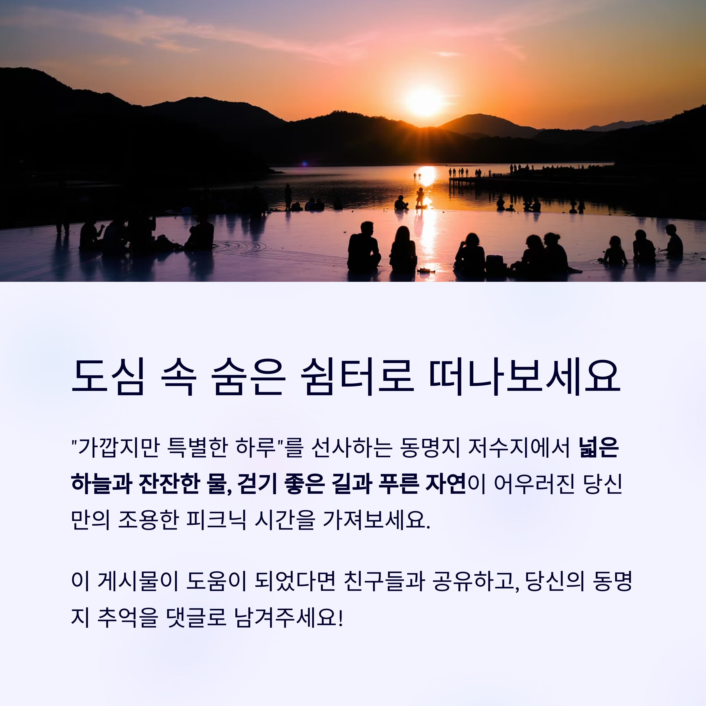 도심 속 숨은 쉼터, 동명지 저수지로 떠나보세요