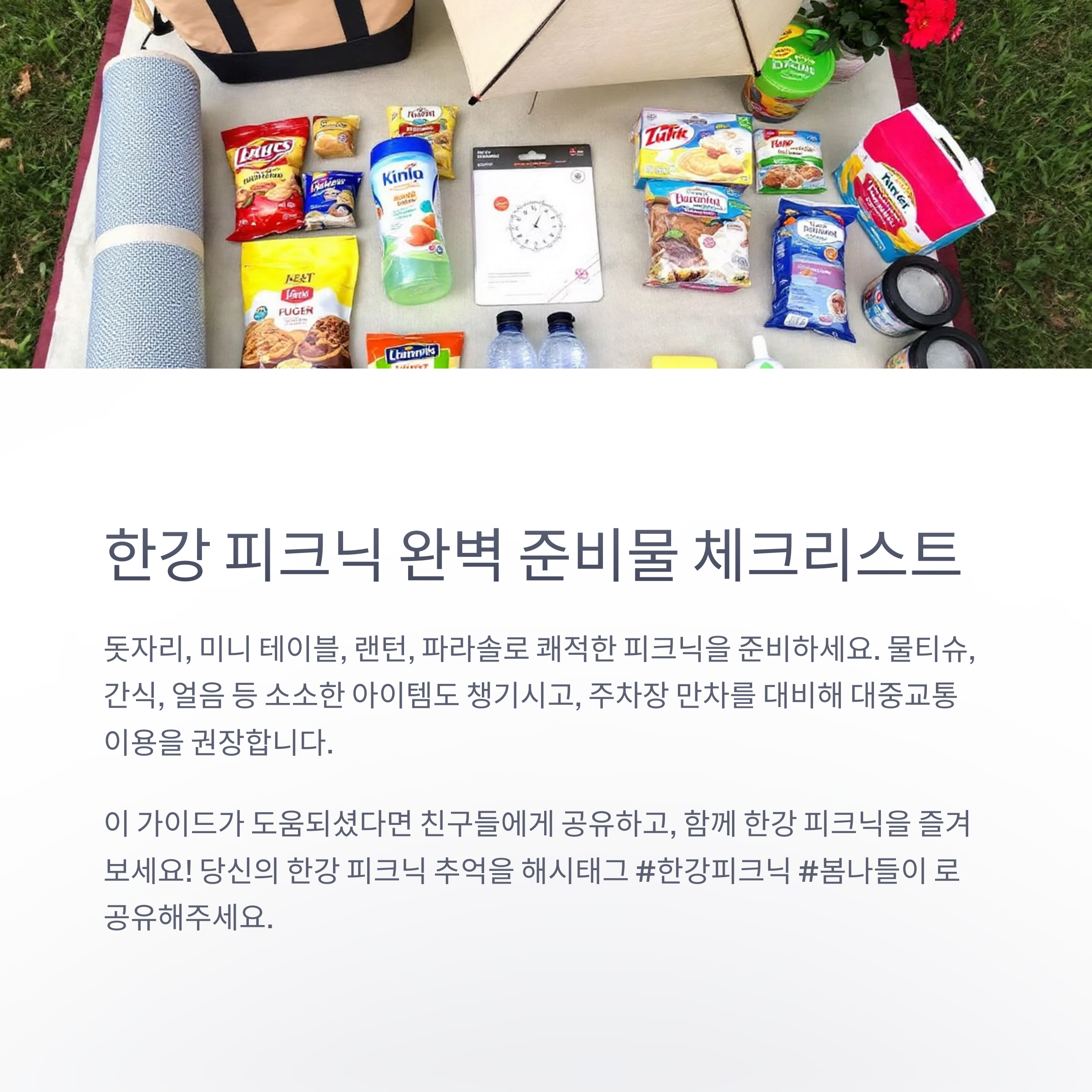 한강공원 피크닉 꿀팁 - 봄철 나들이 필수 준비물