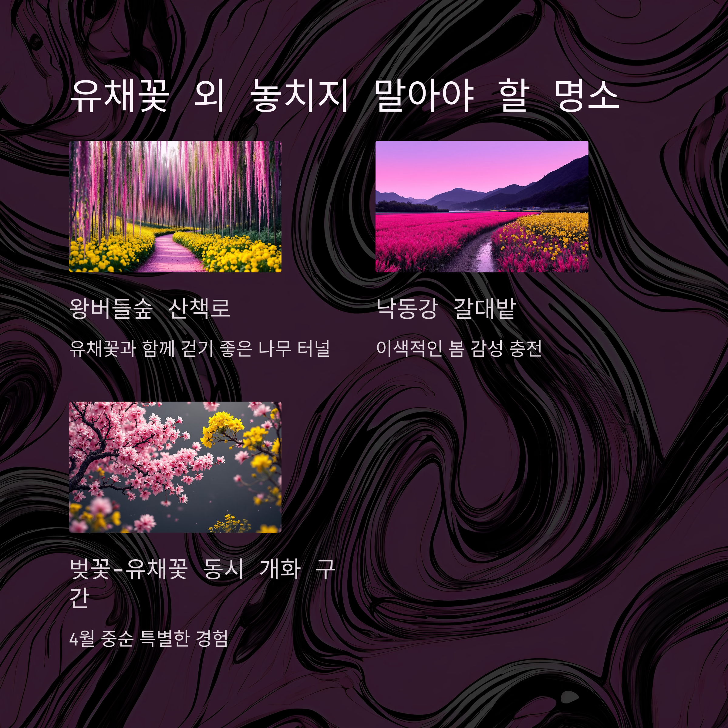 - 4월 중순엔 벚꽃과 유채꽃이 동시에 피는 구간도 존재