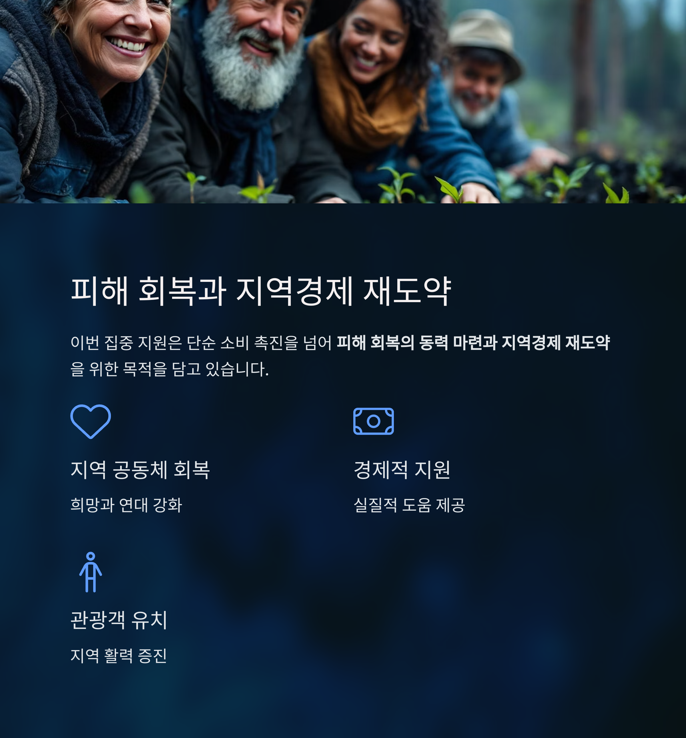 피해 회복의 동력 마련과 지역경제 재도약을 위한 목적을 담고 있습니다.