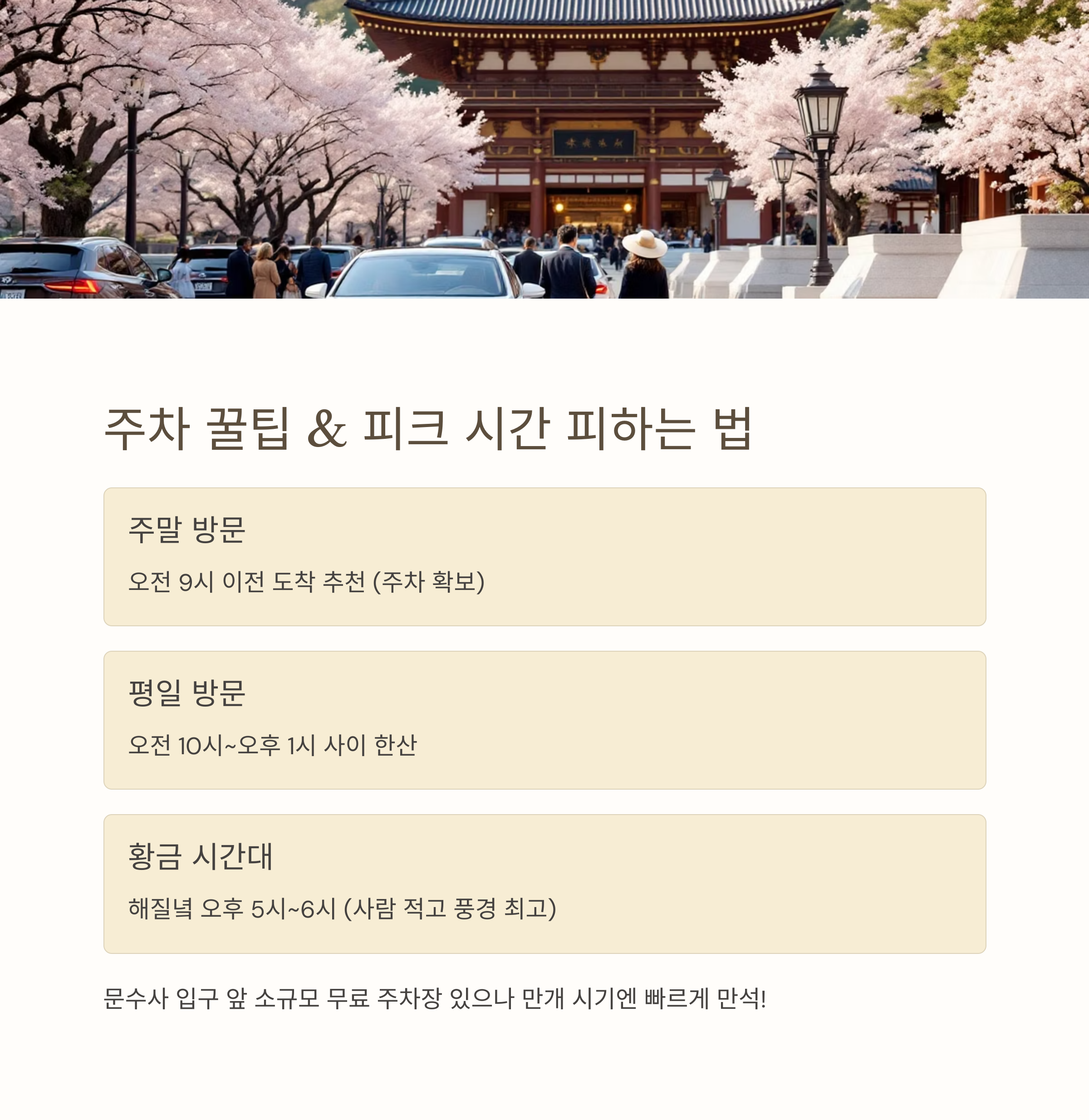 4. 주차 꿀팁 & 피크 시간 피하는 법