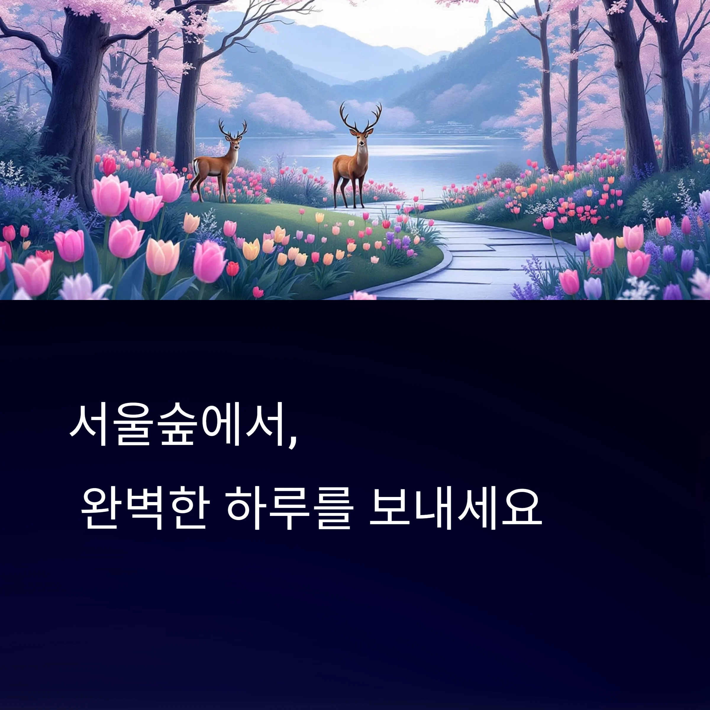 화려한 튤립, 조용한 나무숲, 꽃사슴, 온실, 한강까지