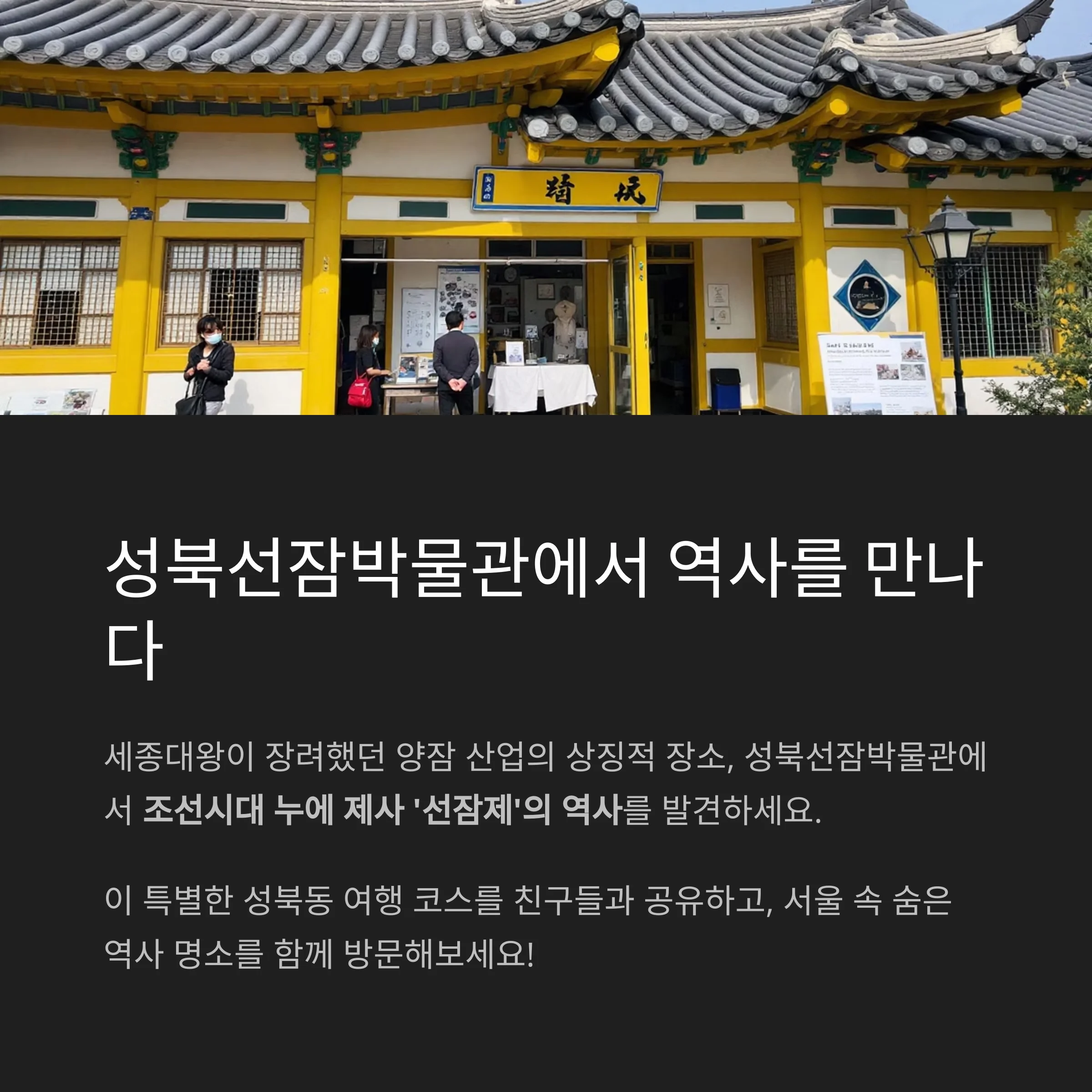 성북선잠박물관은 조선시대 누에 제사 ‘선잠제’의 역사를 보여줍니다.