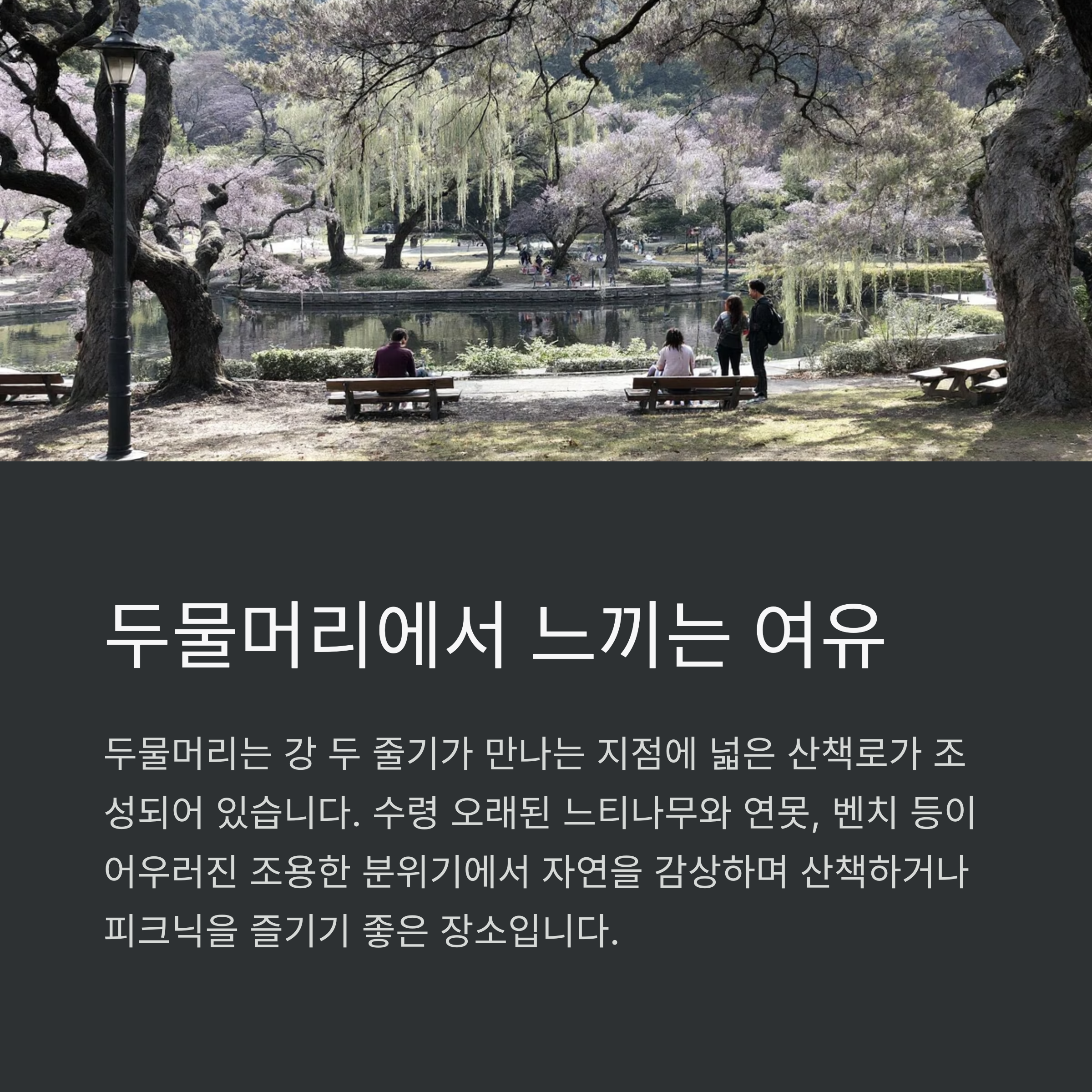 자연을 감상하며 산책하거나 피크닉을 즐기기 좋은 장소입니다.
