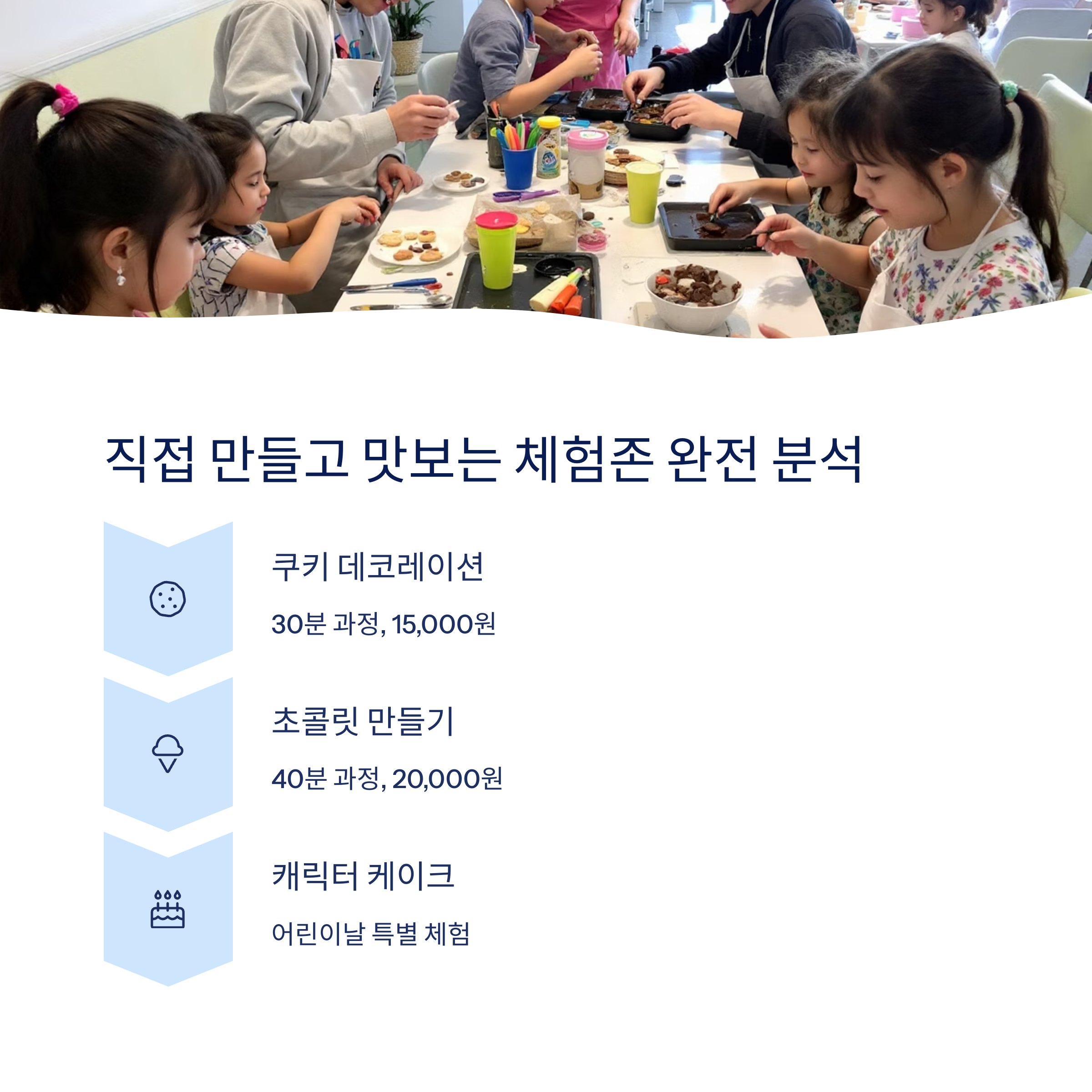 대표 체험으로는 2D 과자의 성 꾸미기, 바다 쿠키 만들기 등이 있으며