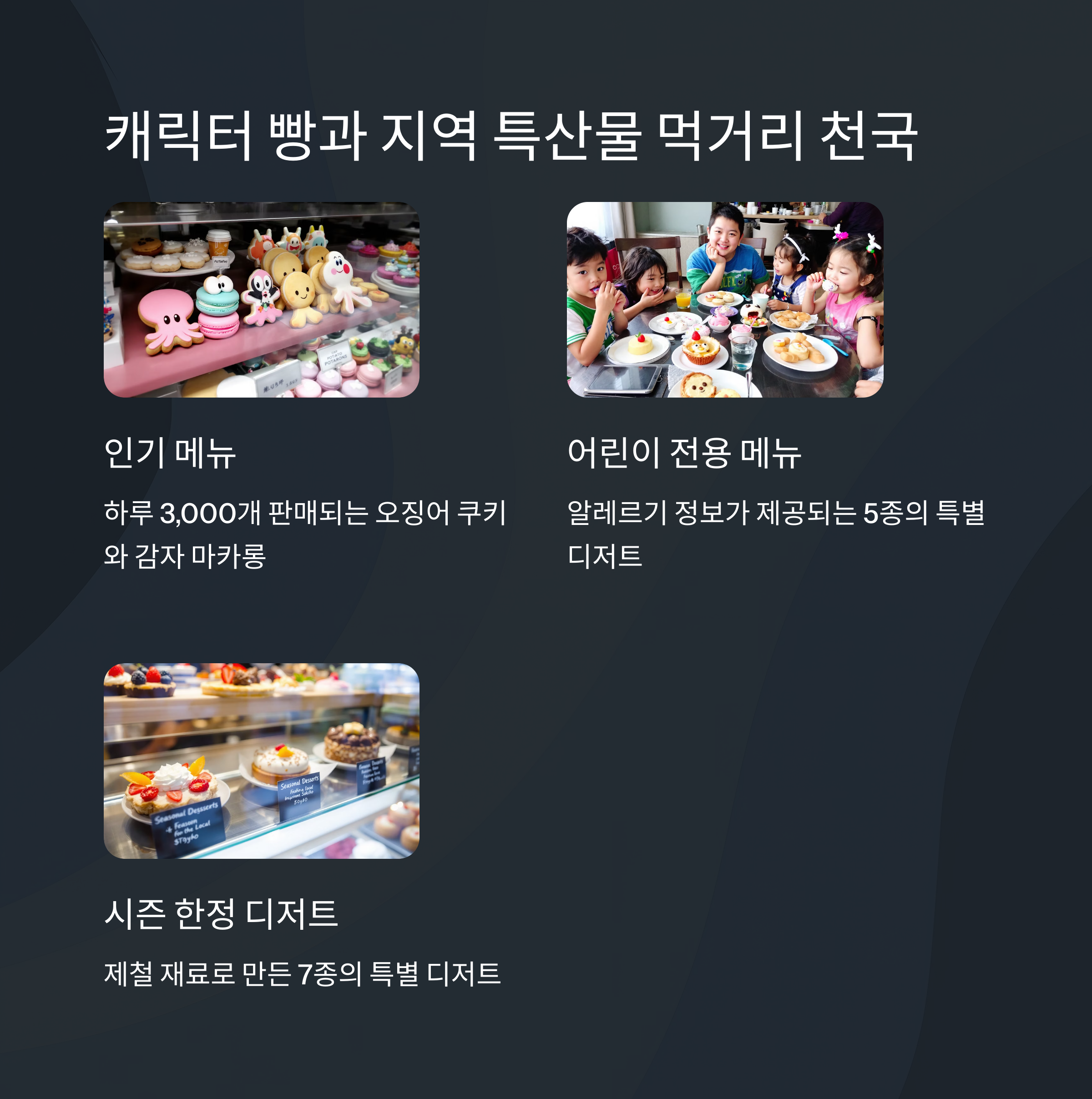 먹거리도 보고 사고, 기념품까지 완벽하게 챙길 수 있는 공간입니다 🧁🍞