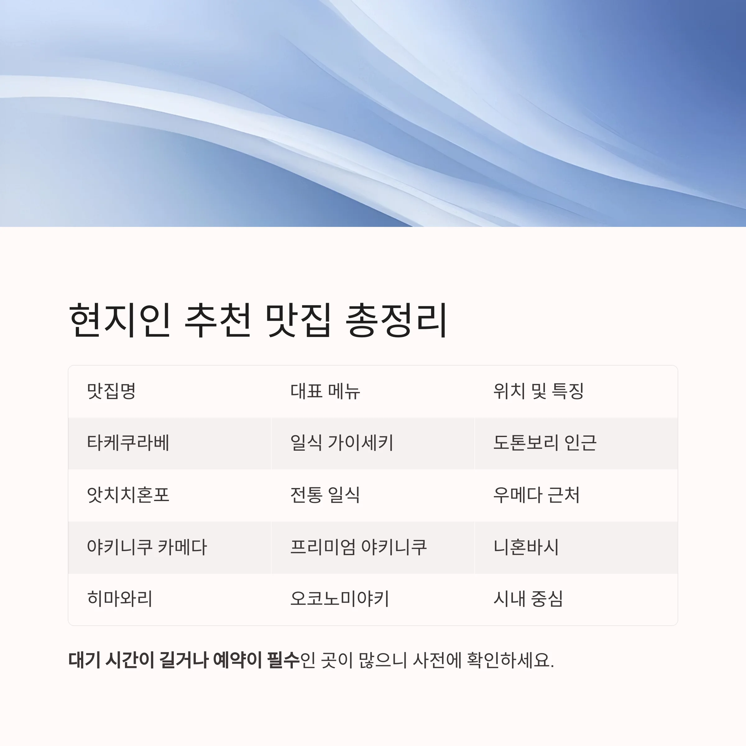 오사카의 진짜 매력은 현지인 추천 맛집에서 시작됩니다.