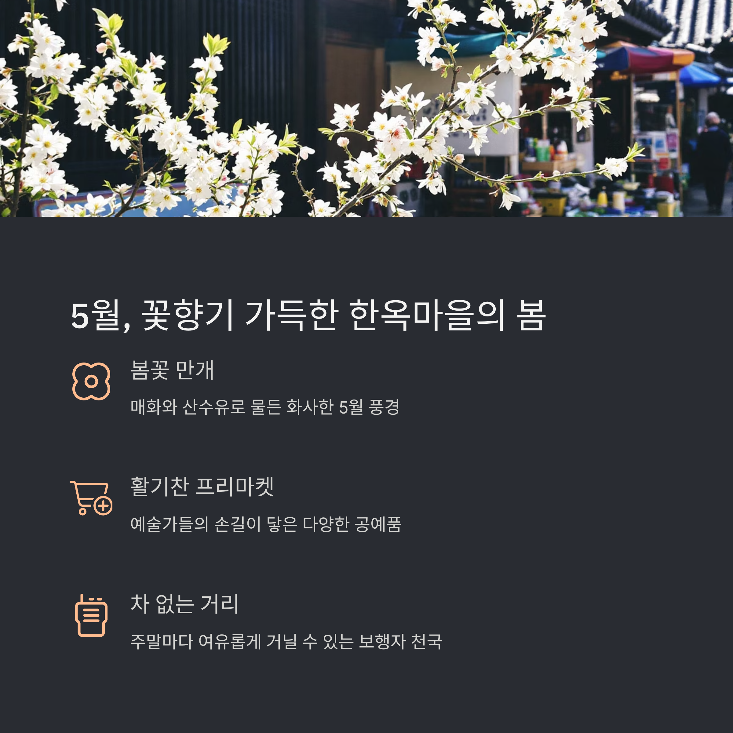 느리게 걷고, 잠시 쉬어가며 옛 감성을 온전히 느껴보세요.