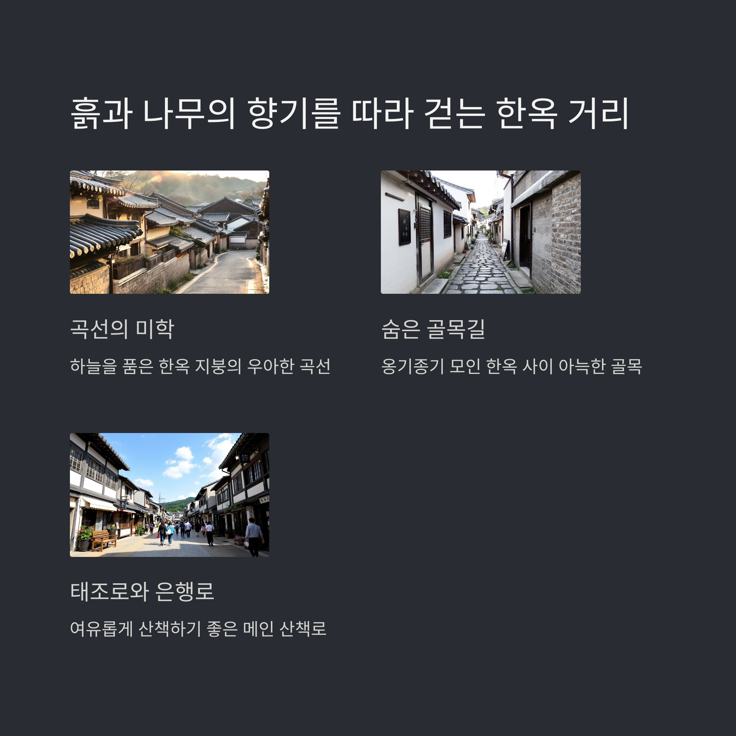 전통 한옥이 늘어선 골목골목을 따라 걷다 보면