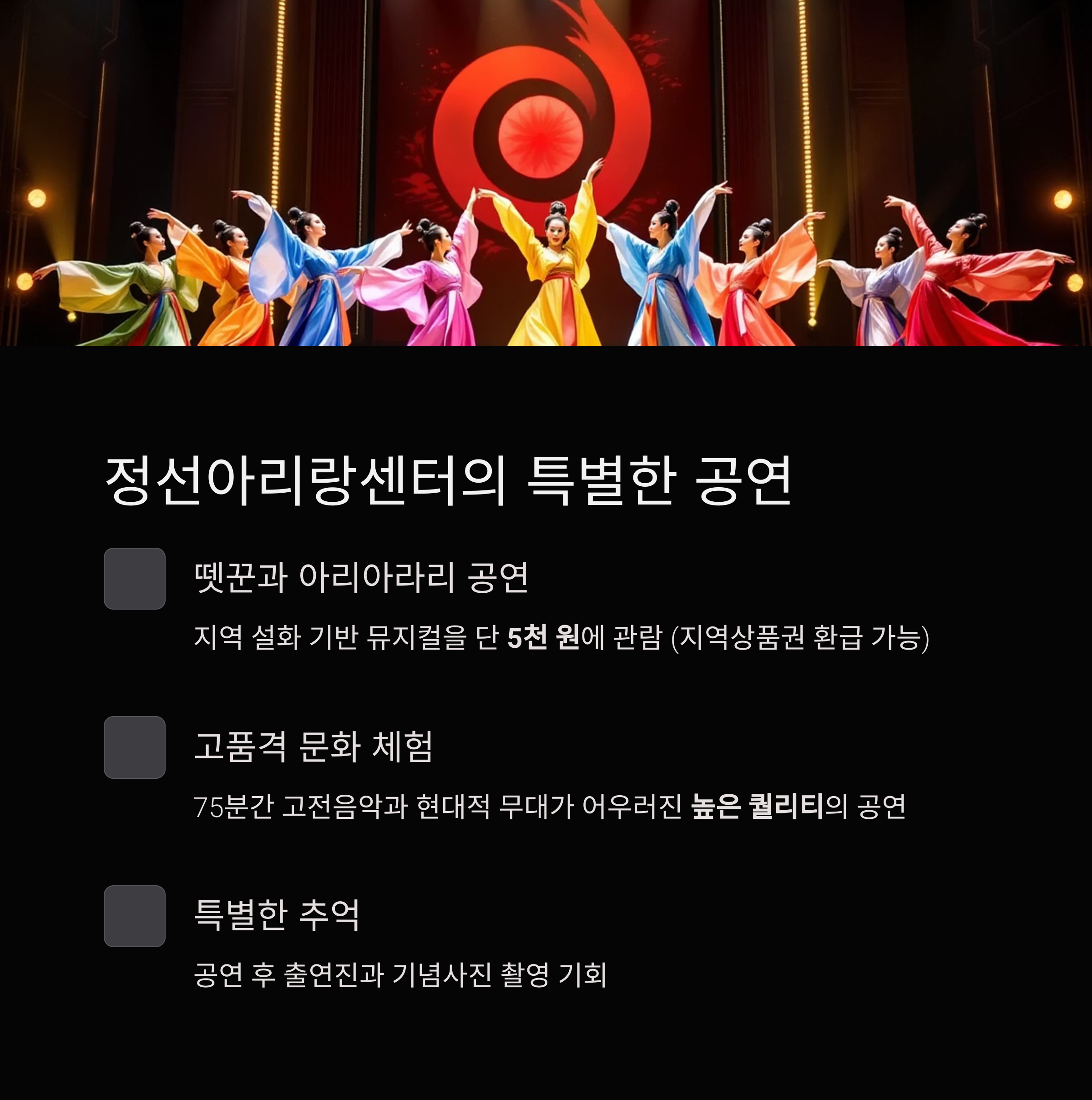 | 공연 요금 | 5천 원 (동일 금액 지역상품권 환급) |