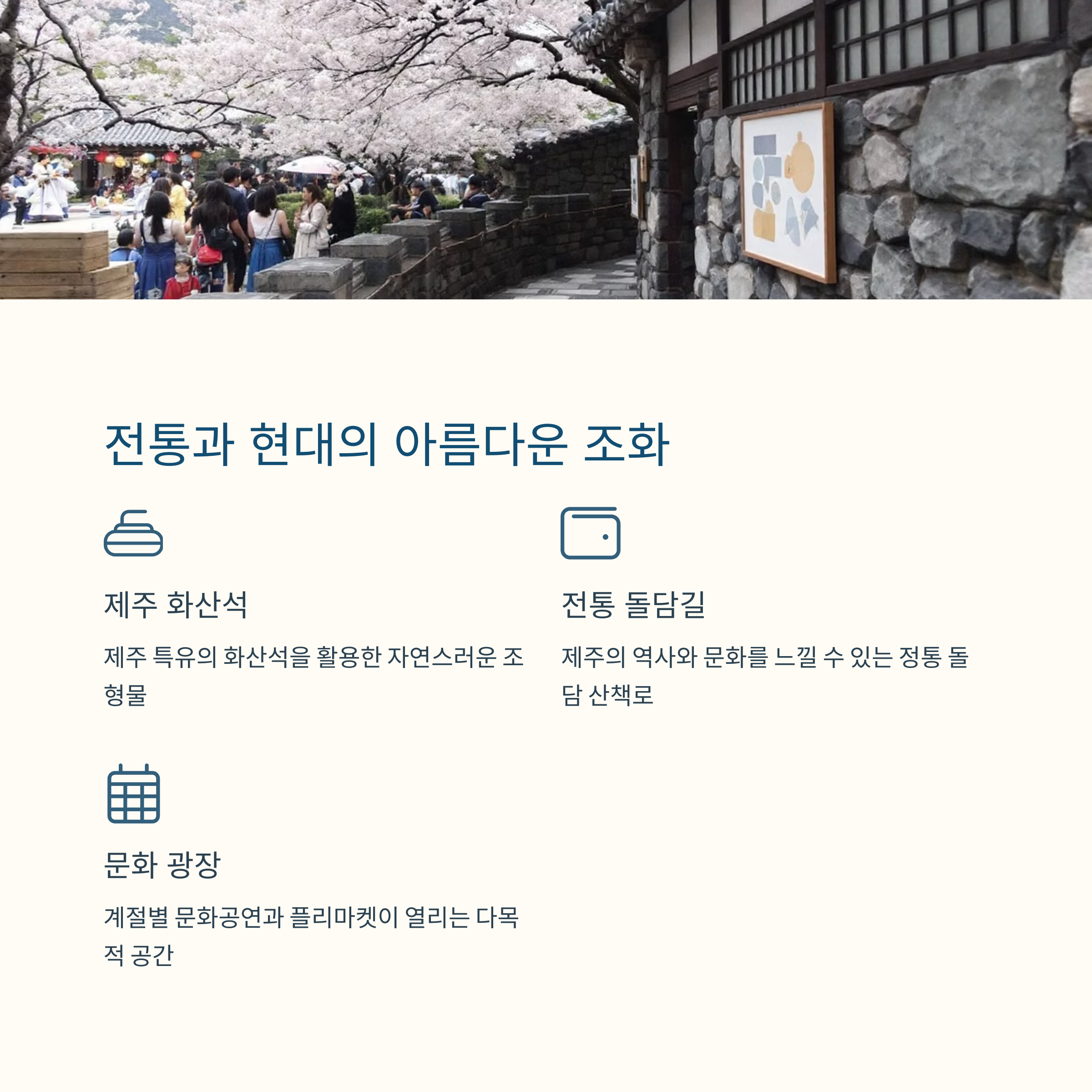 제주의 전통 문화와 현대적인 감각이 어우러지는 구조로 조성되어 있습니다.