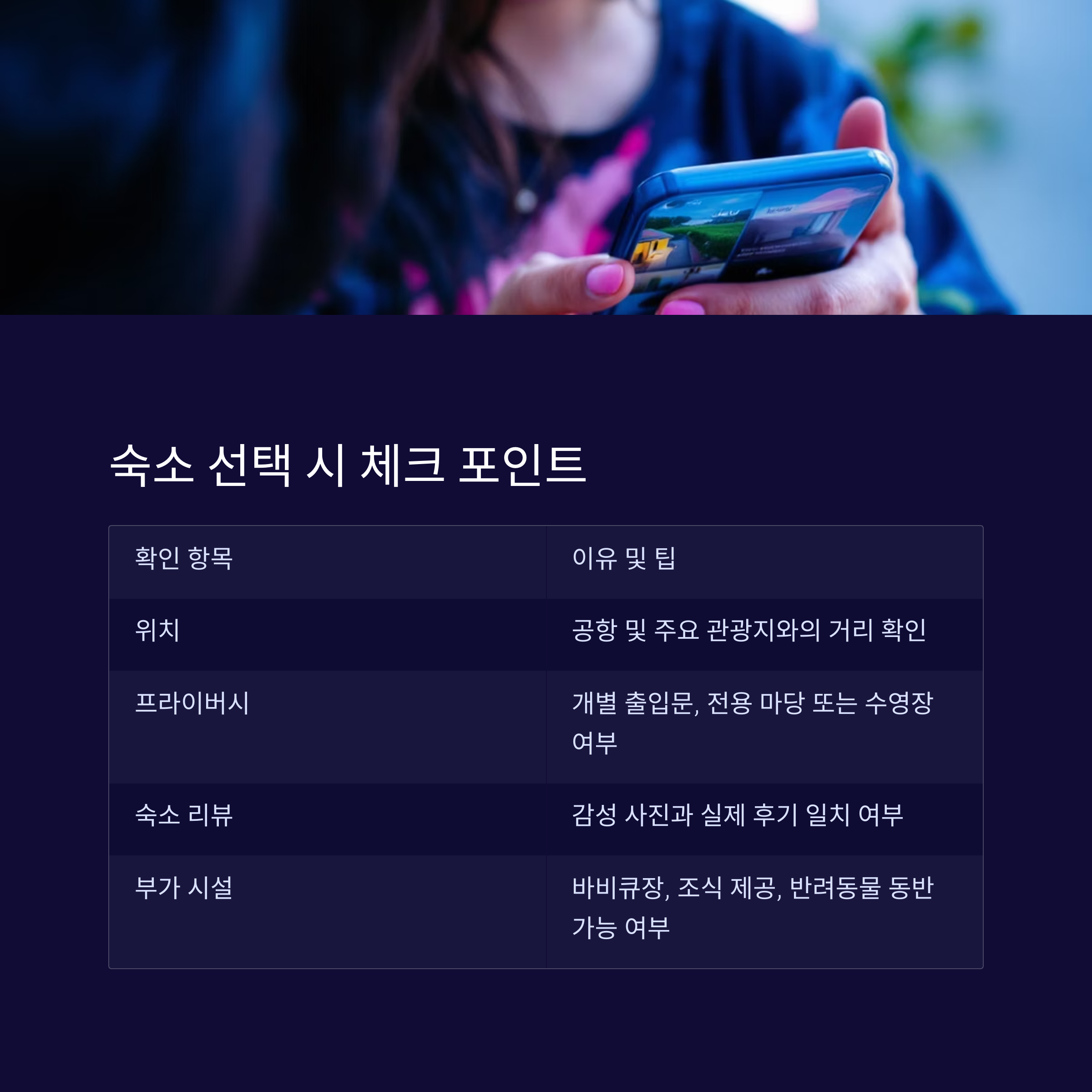 숙소 예약 전 아래 요소들을 체크해보세요.