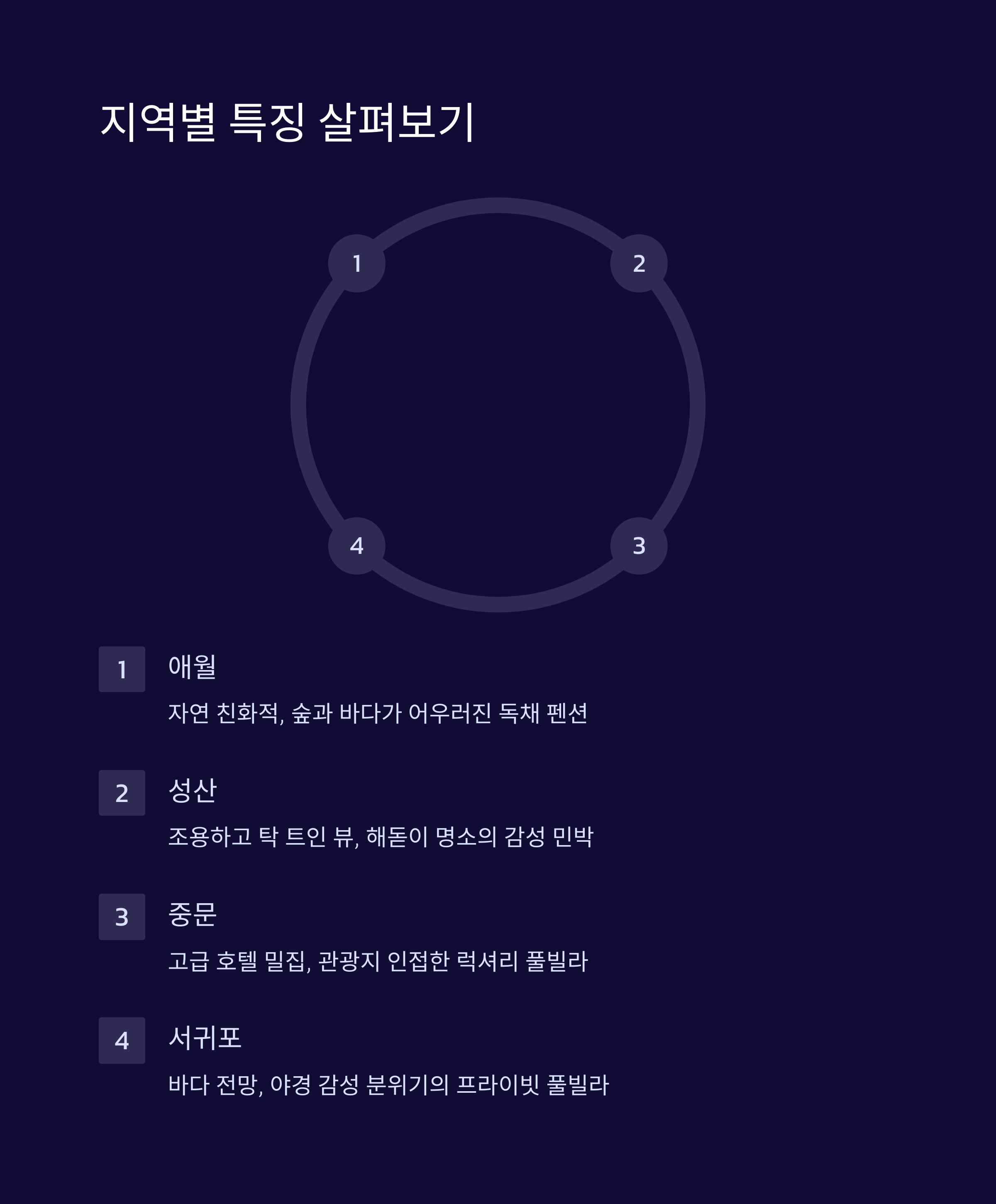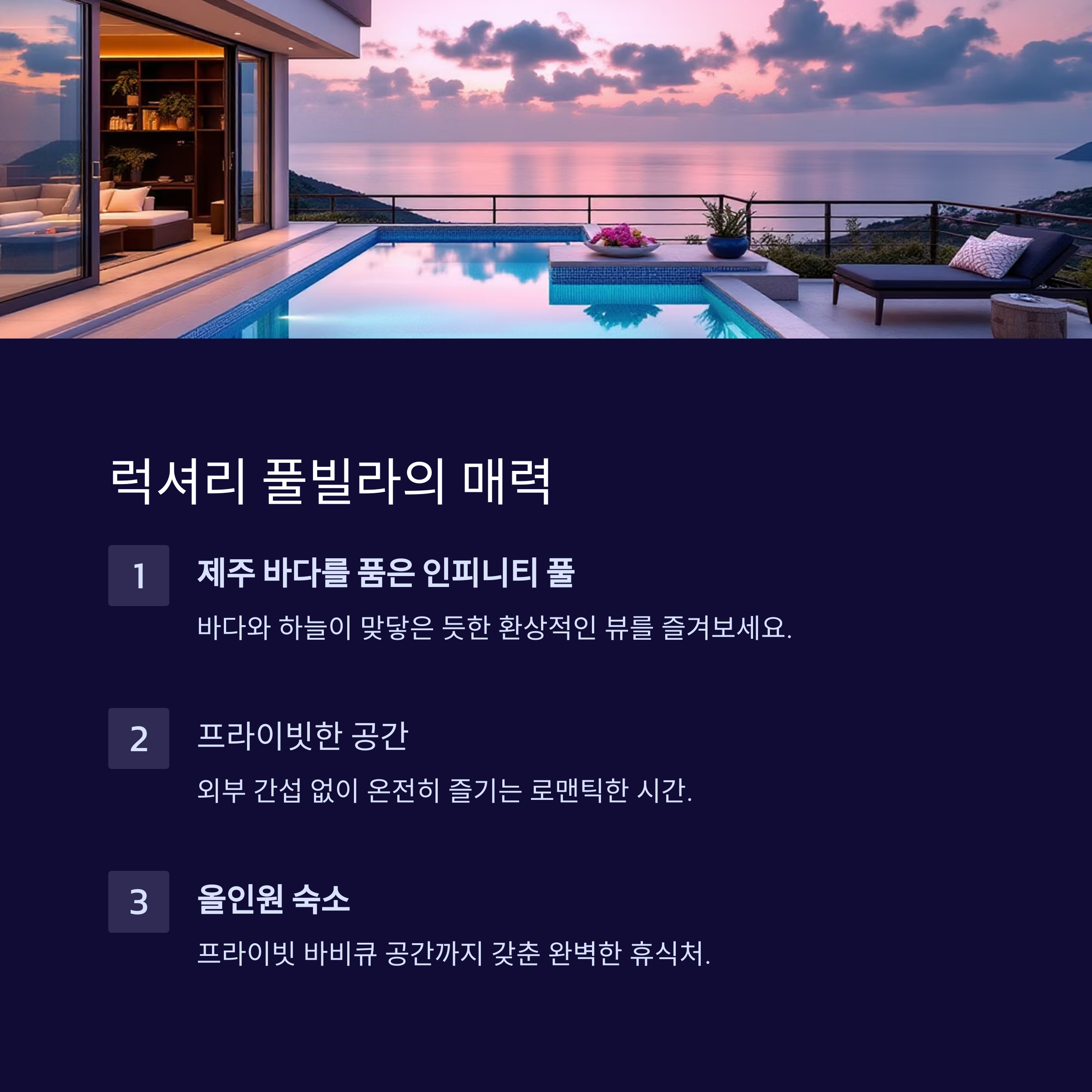 | 서귀포 | 바다 전망, 야경 감성 분위기 좋음 | 프라이빗 풀빌라 |