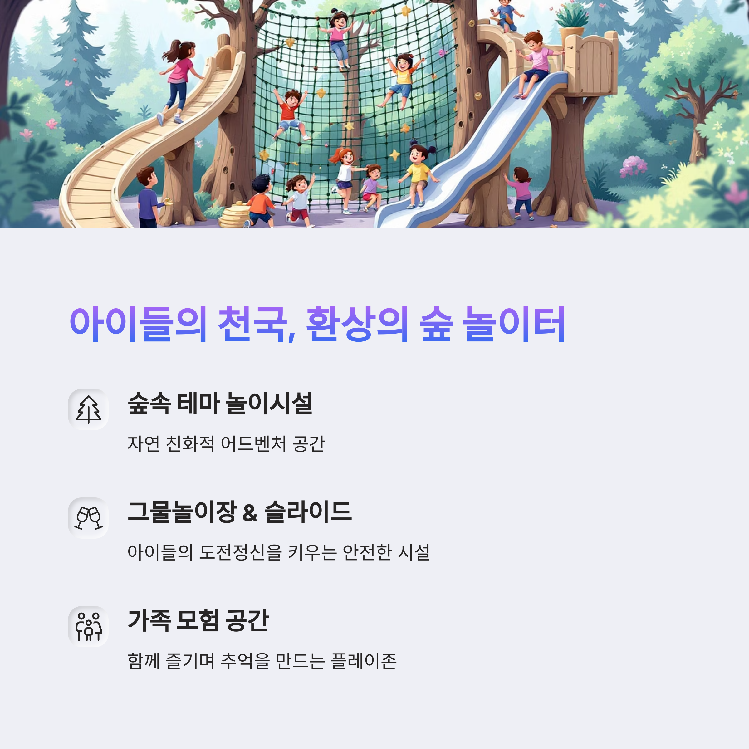 아이들과 함께라면 '환상의 숲 놀이터'는 꼭 들러야 할 곳입니다.