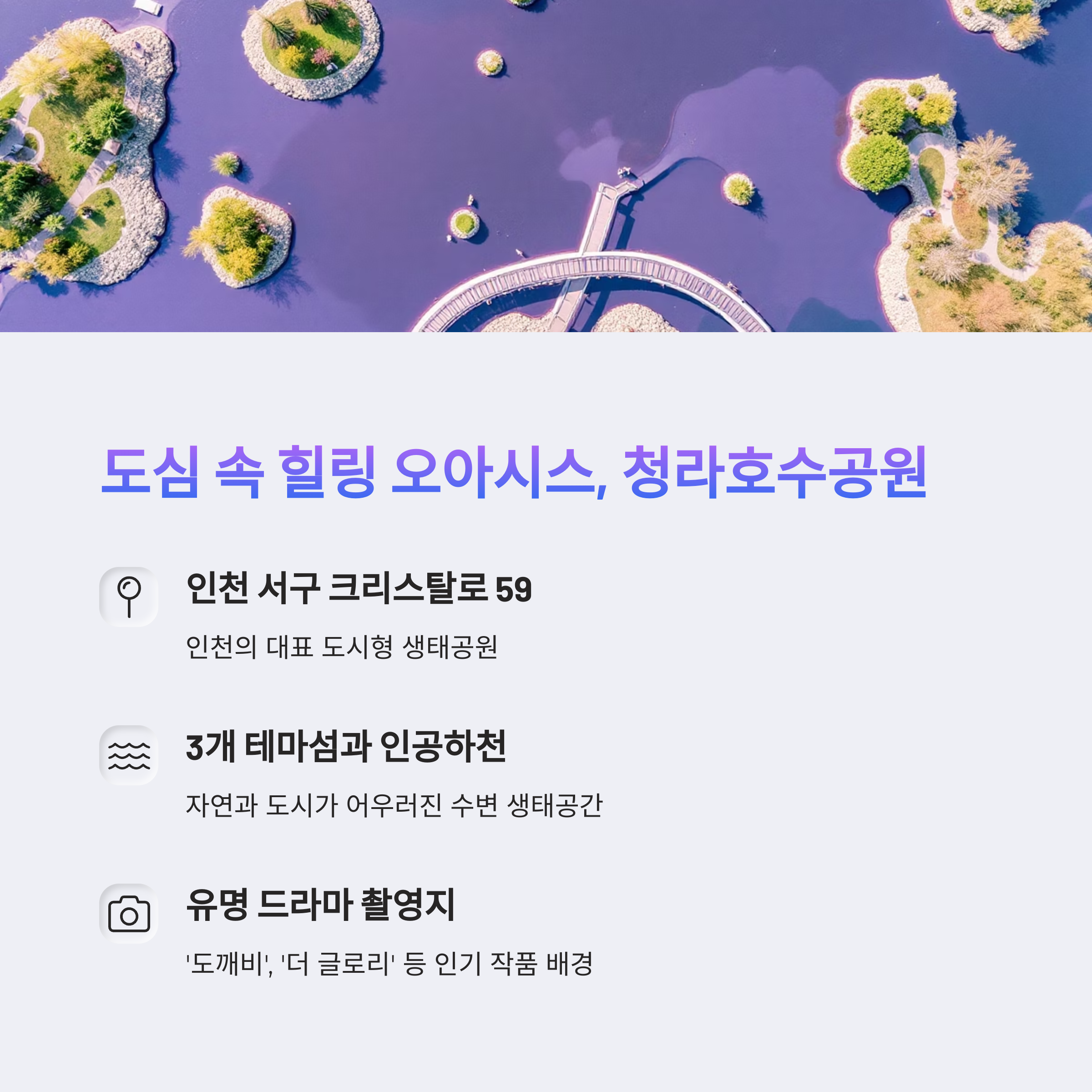 청라호수공원은 인천 청라국제도시에 위치한 대형 도심 수변공원입니다.