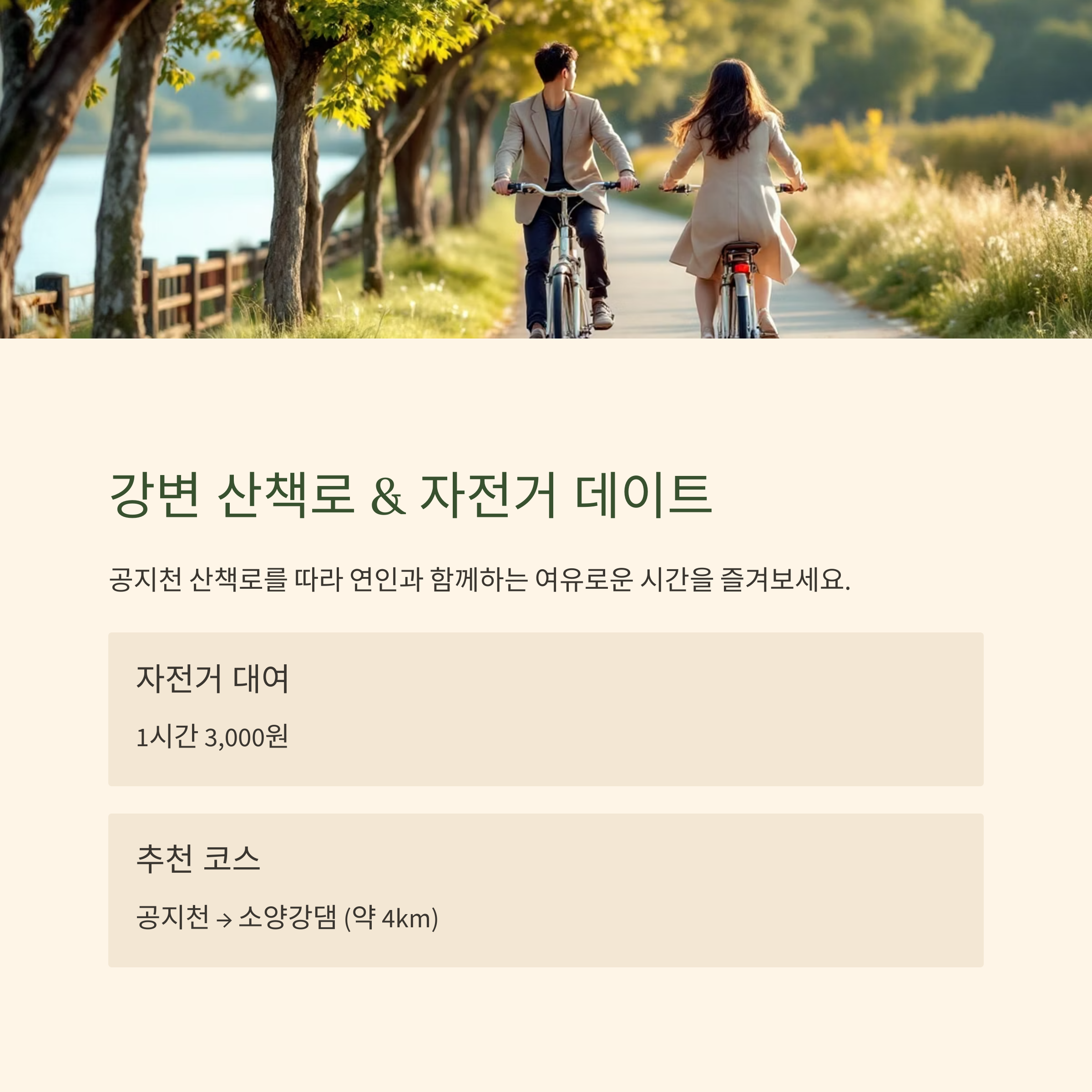 "강변 산책로 & 자전거 데이트로 힐링"