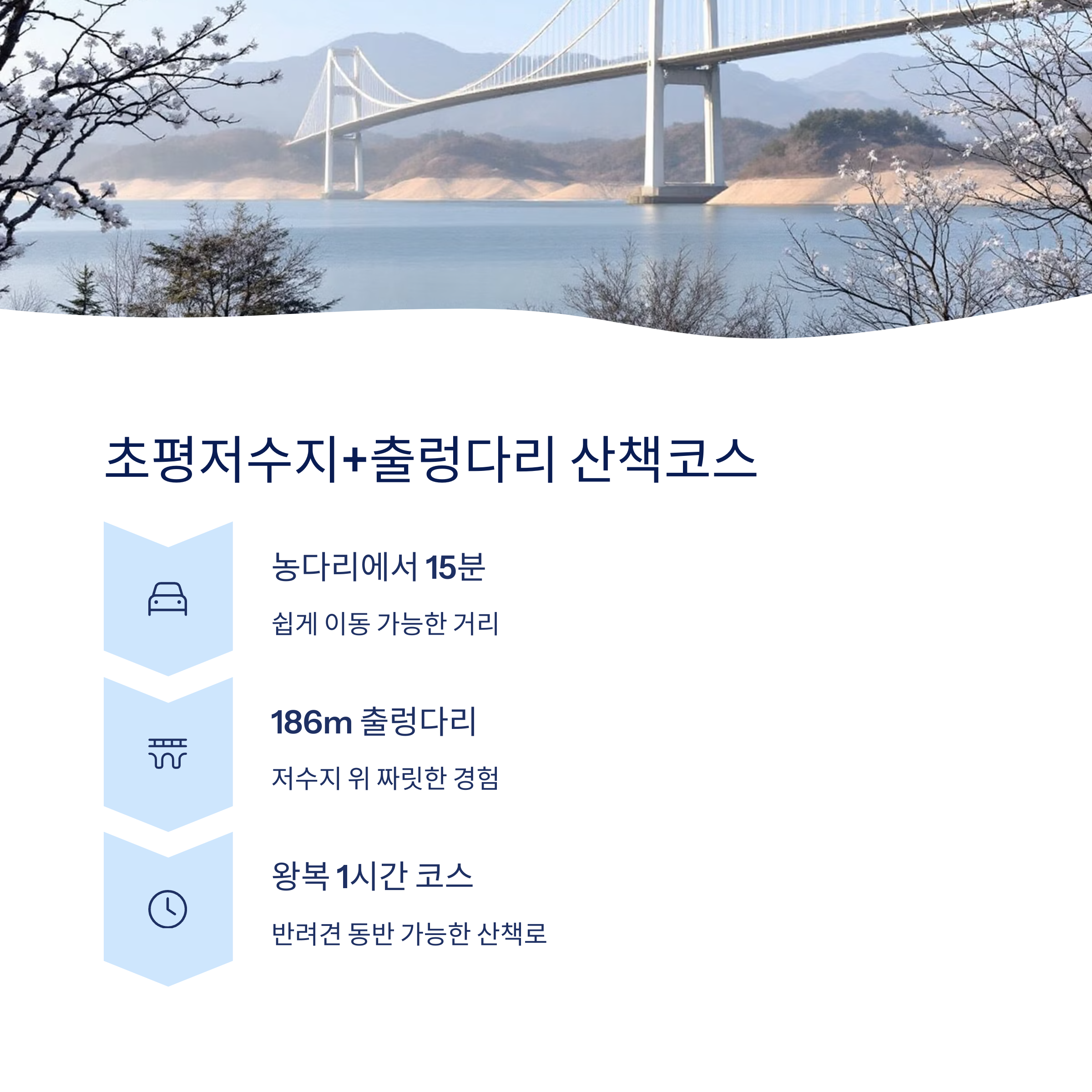 초평저수지와 연결되는 둘레길과 출렁다리가 이어집니다.