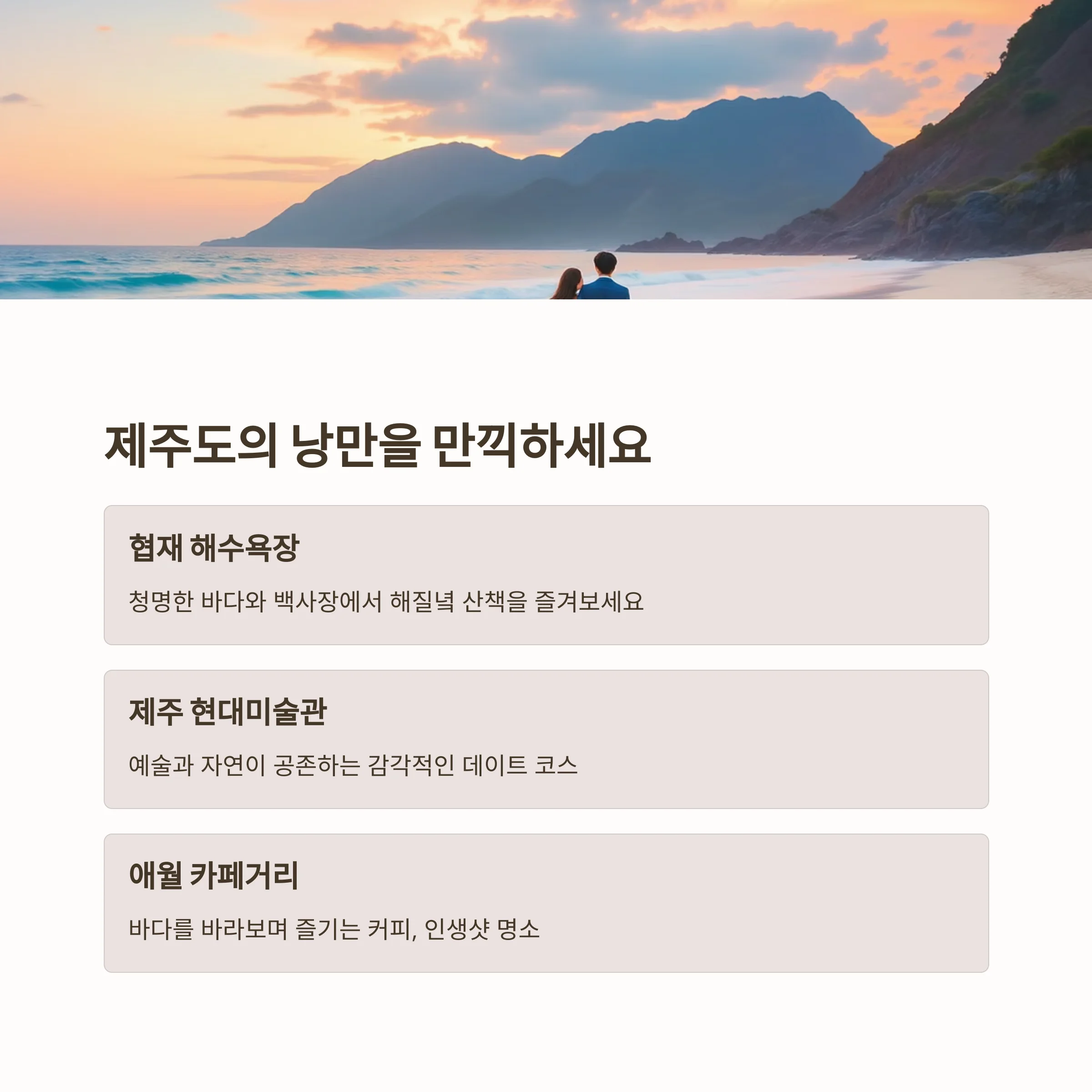 로맨틱한 분위기를 원한다면 제주도는 빠질 수 없는 최고의 선택지입니다.