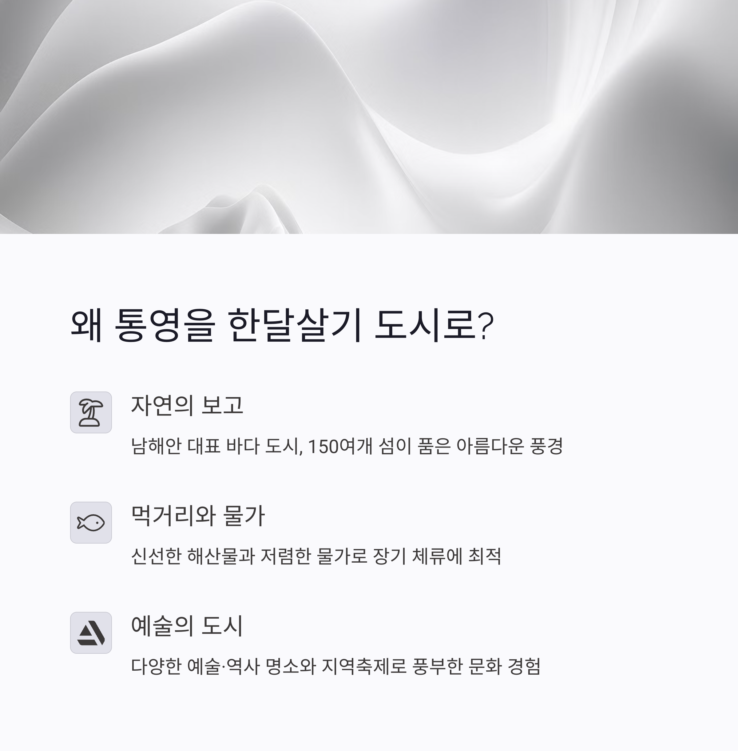 "바다를 품은 예술 도시" 통영은 한달살기에 최적의 도시입니다.