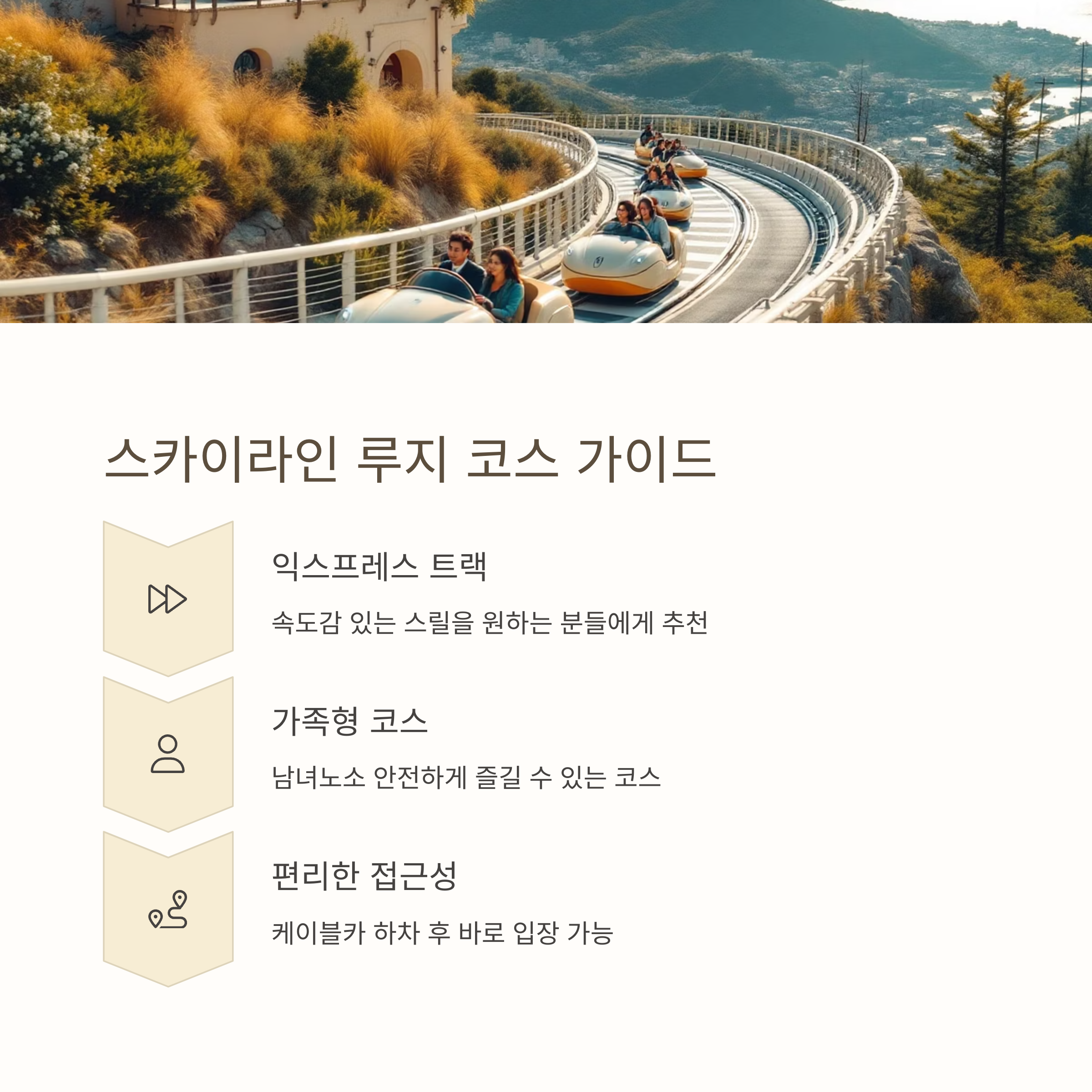 어드벤처 타워, 루지, 케이블카 모두 가족 단위 방문객에게 인기가 높아요.