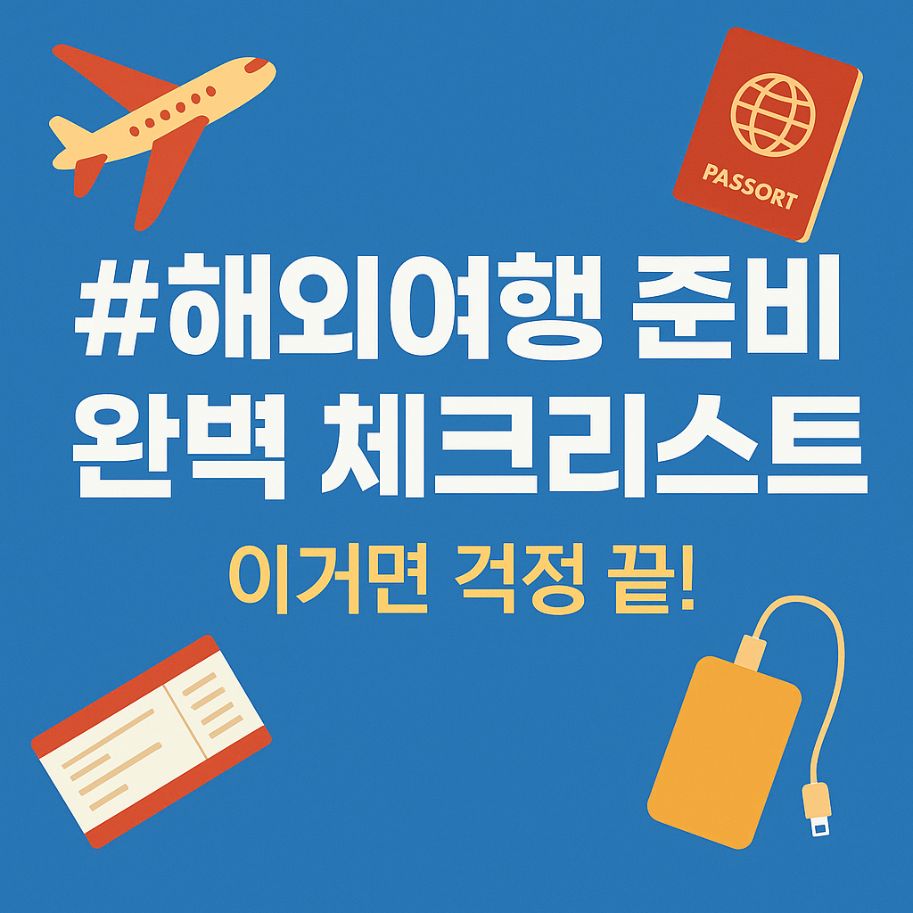 해외여행 전 반드시 챙겨야 할 준비물과 여행 꿀팁을 한 번에 확인할 수 있는 실용 가이드입니다. 중요한 서류부터 놓치기 쉬운 소지품까지, 체계적인 체크리스트로 편리한 여행을 준비해 보세요.