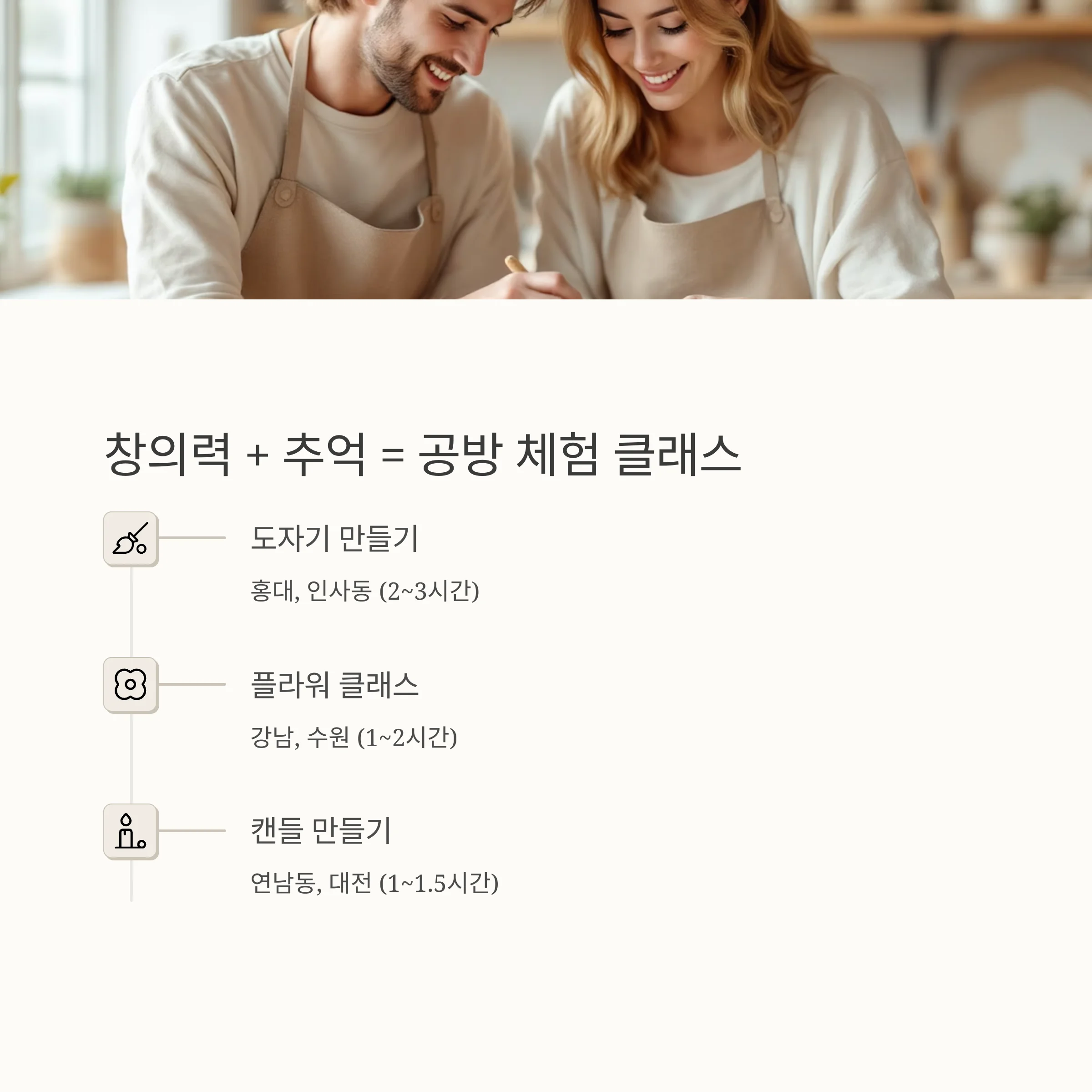 | 캔들 만들기 | 연남동, 대전 | 1~1.5시간 |