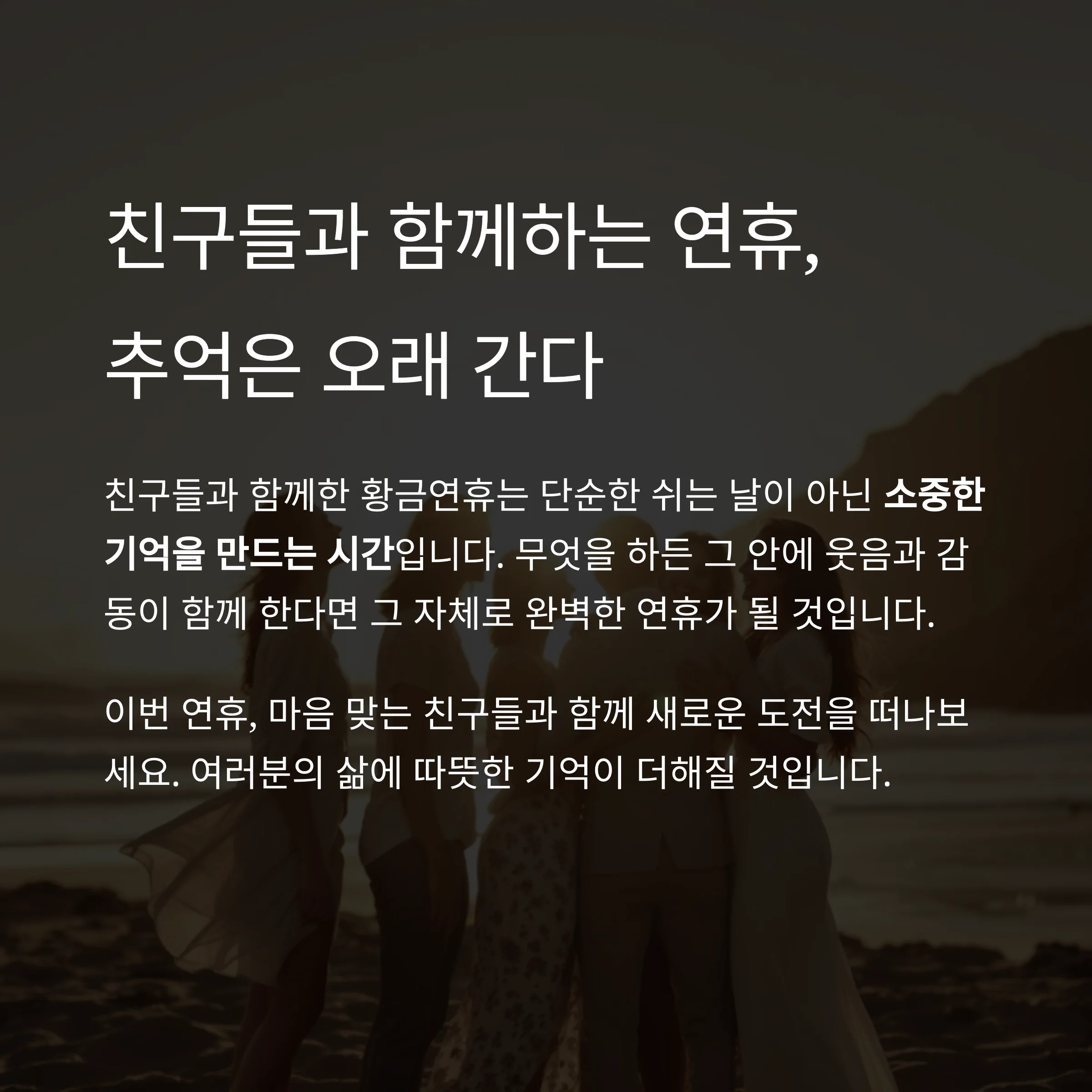 이번 연휴, 무엇을 할까 고민이라면? 친구들과 특별한 시간을 보내보세요