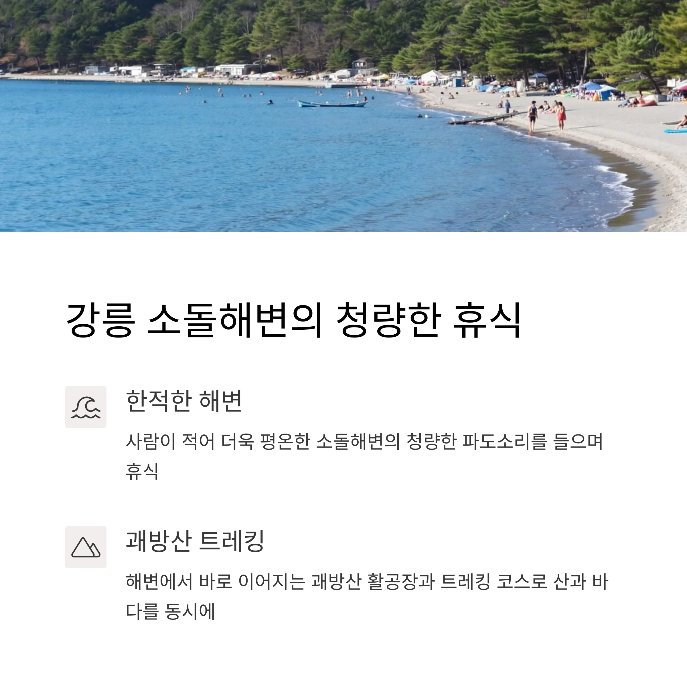 "바다와 산을 함께 만나는 힐링"을 경험할 수 있습니다.