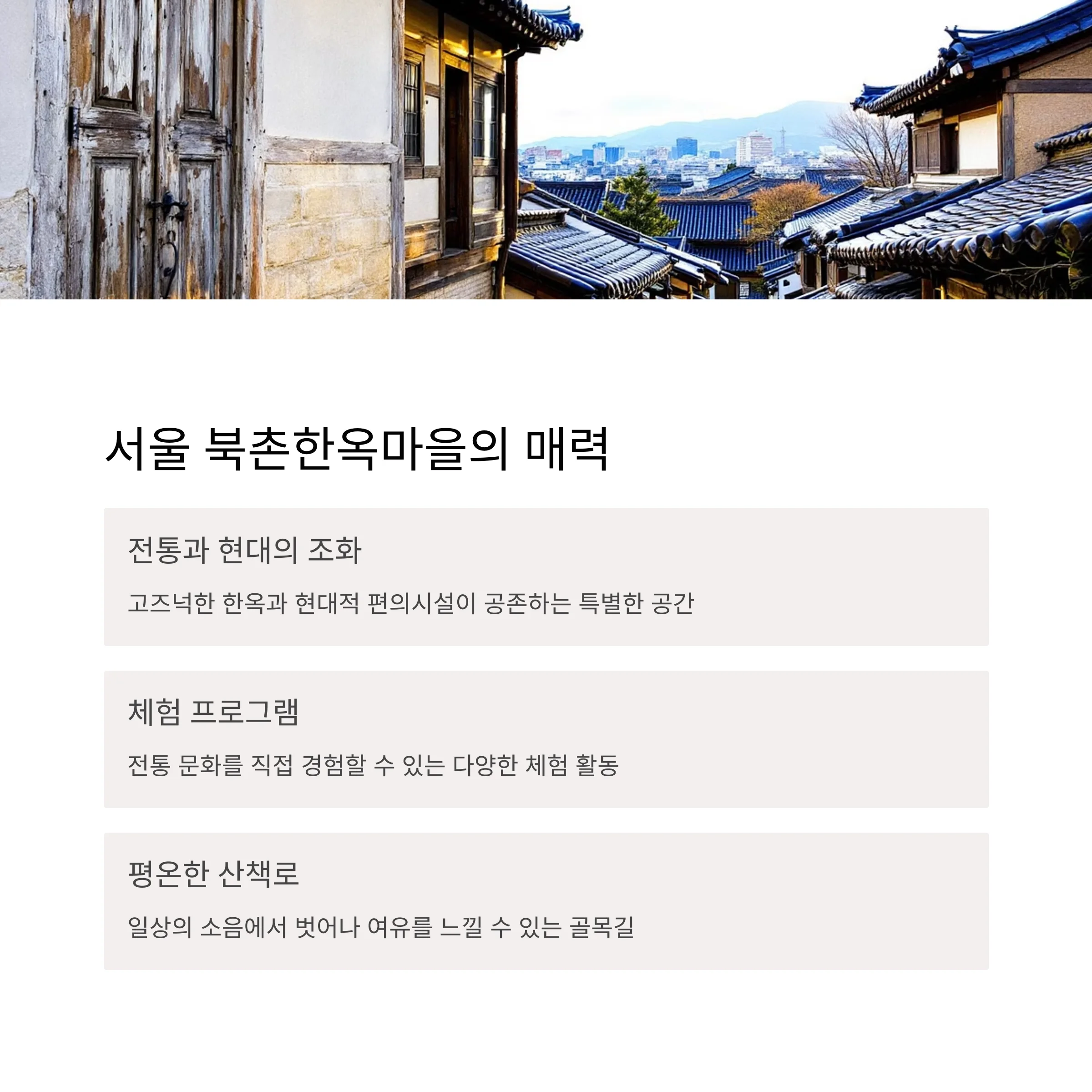 서울 북촌한옥마을, 전통과 현대가 만나는 도심 속 휴식