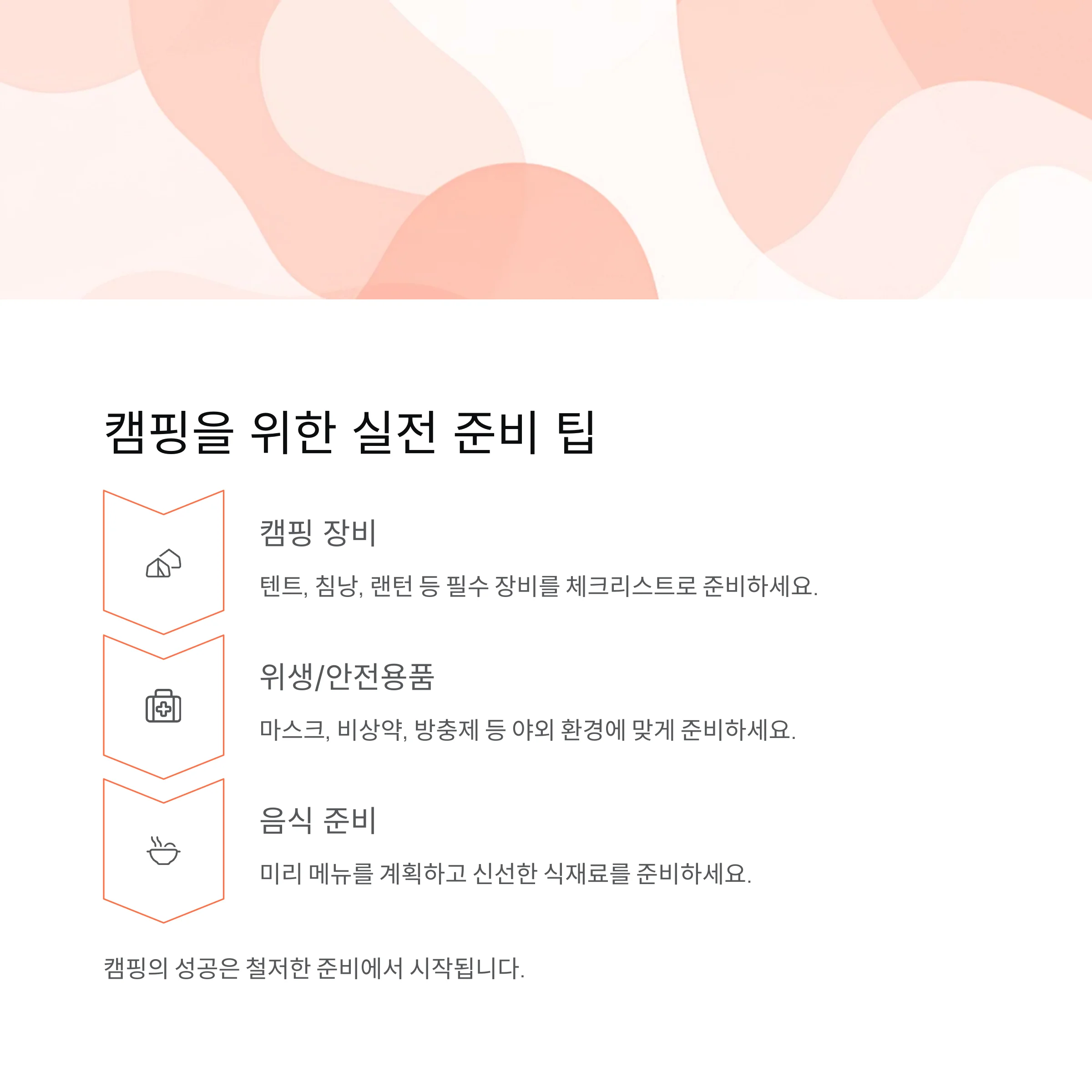캠핑의 성공은 준비에서 시작됩니다.