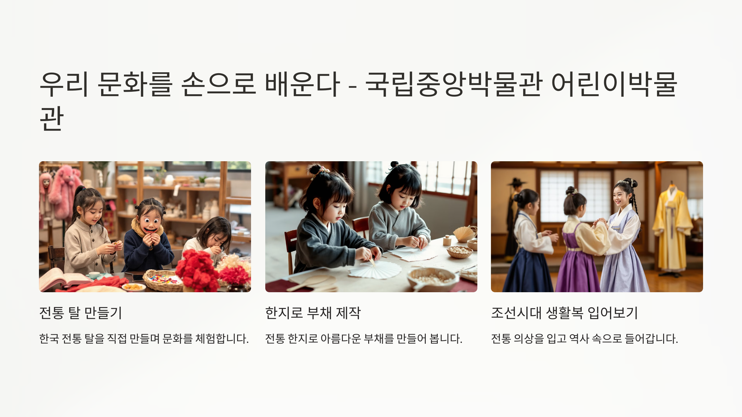 역사와 문화를 직접 만지고 느끼며 배우는 체험 중심 박물관입니다.