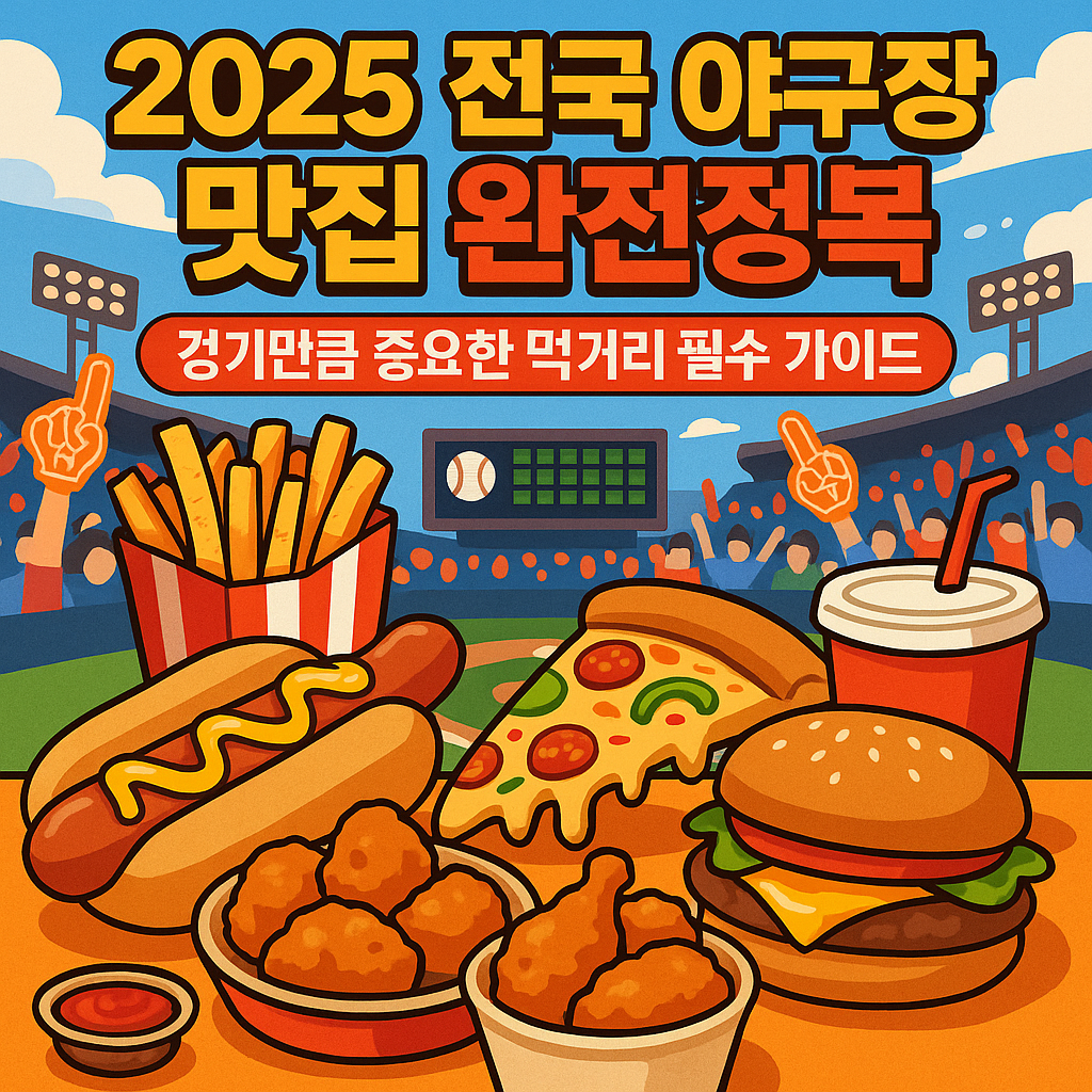 2025 전국 야구장 맛집, 어디까지 가봤니? ⚾️ 프로야구 시즌, 경기 관람만큼 중요한 먹거리! 각 구장별 내부 인기 메뉴부터 숨겨진 외부 맛집까지, 야구팬이라면 꼭 알아야 할 필수 먹킷리스트를 지금 바로 확인하고 완벽한 야구장 나들이를 계획하세요!