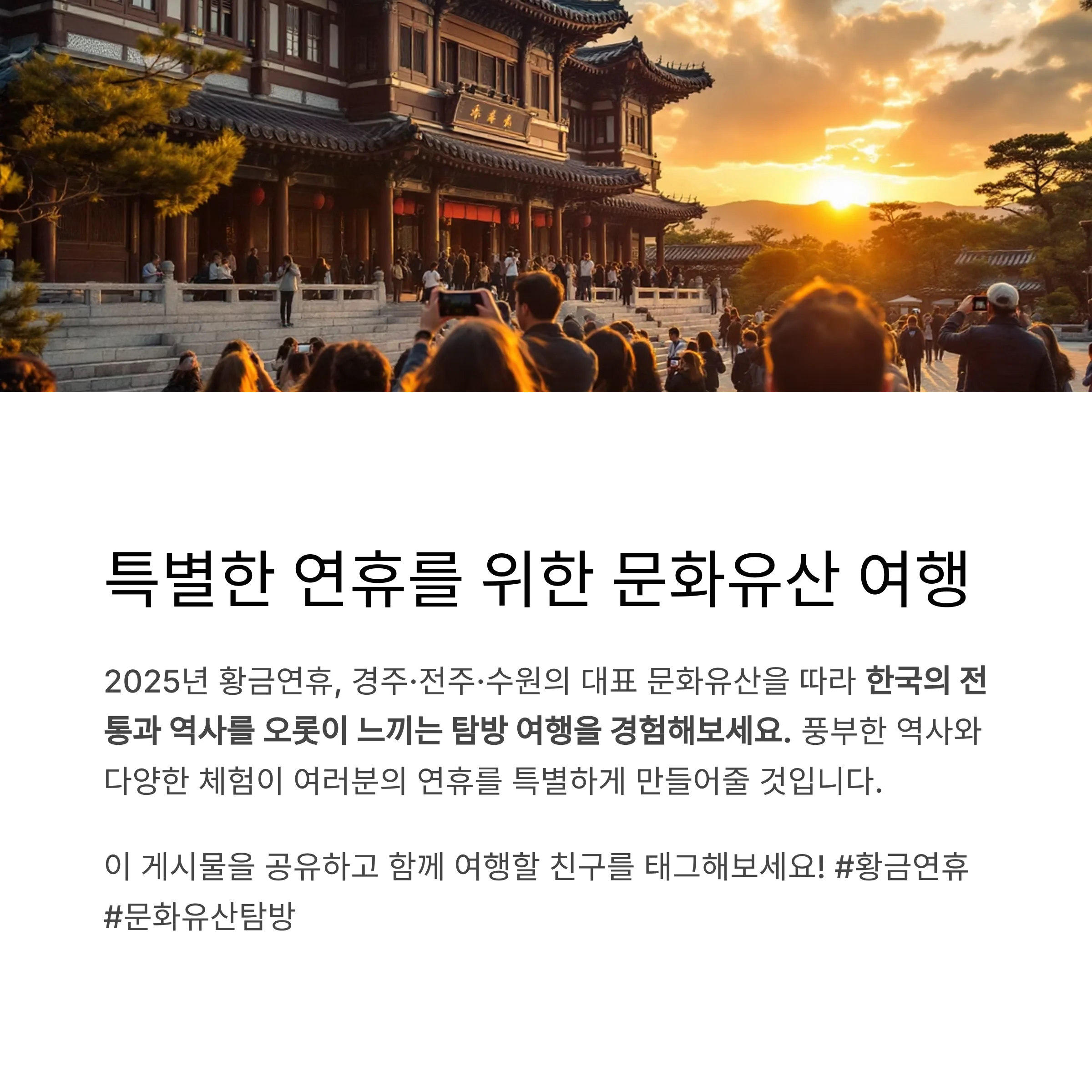 2025년 황금연휴, 경주·전주·수원의 대표 문화유산을 따라