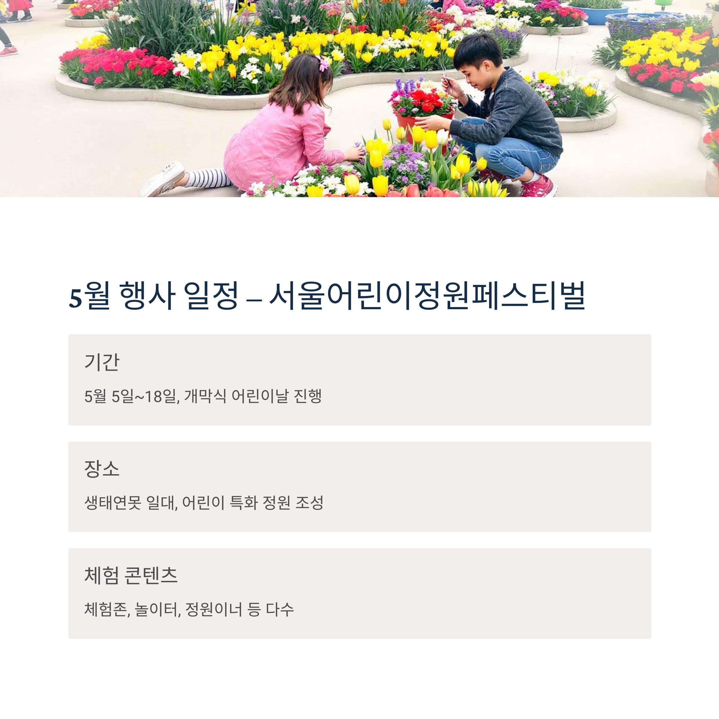 5월 행사 일정 - 서울어린이정원페스티벌 소개